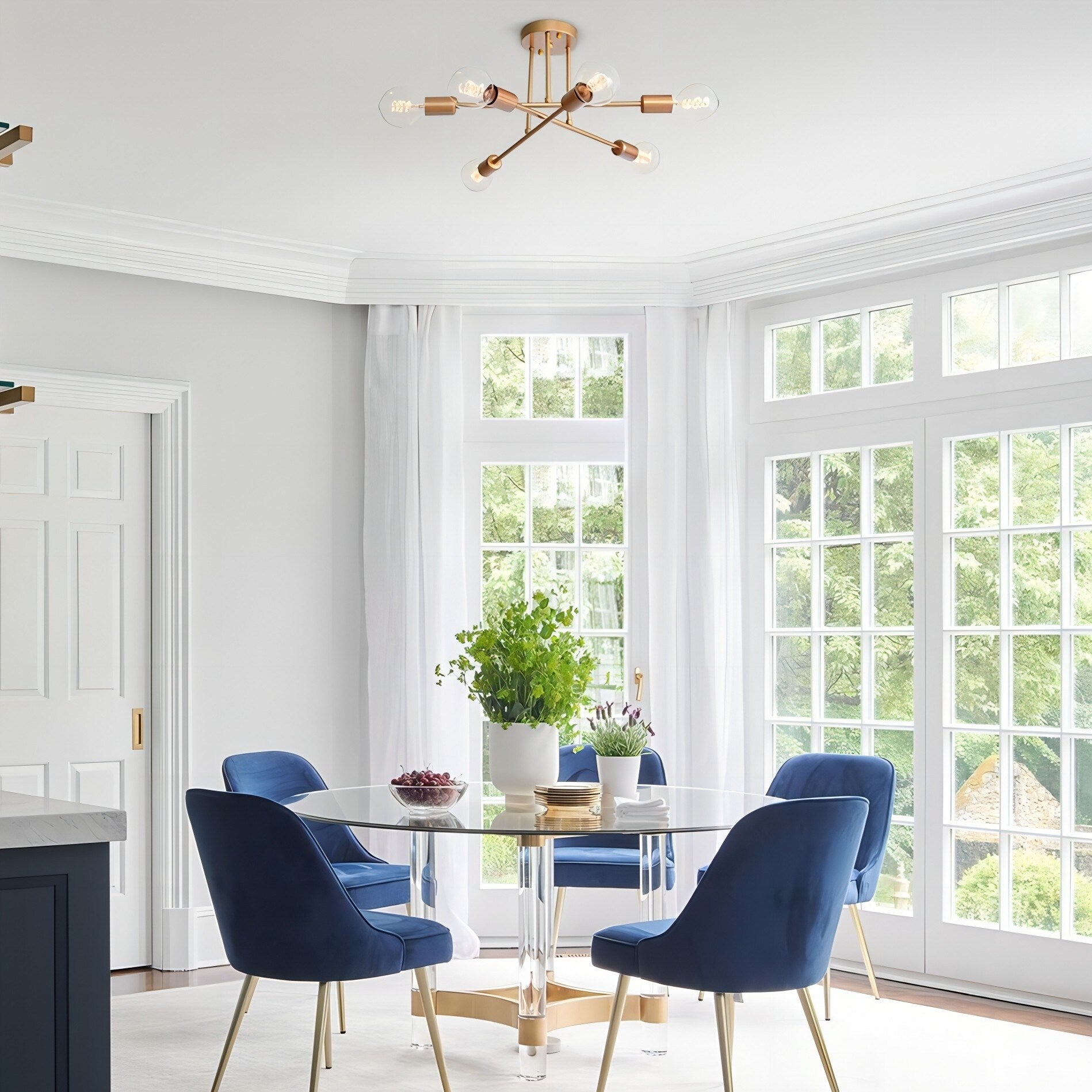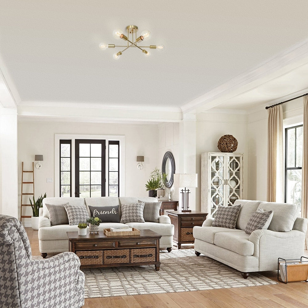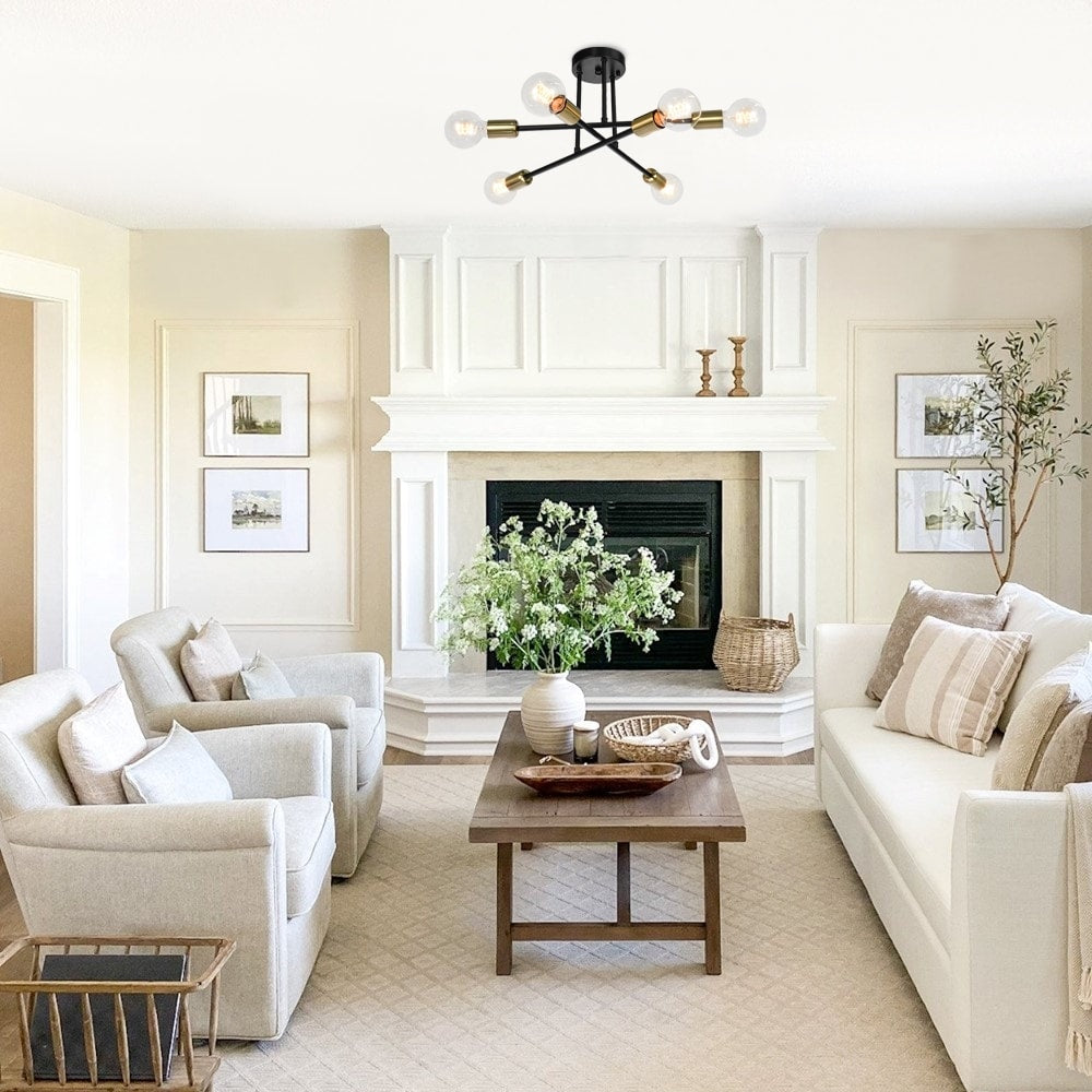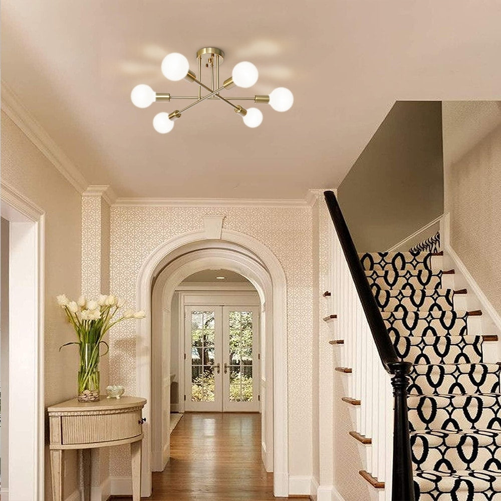 6-Light Modern Industrial Linear Sputnik Branch Semi-Flush Mount...