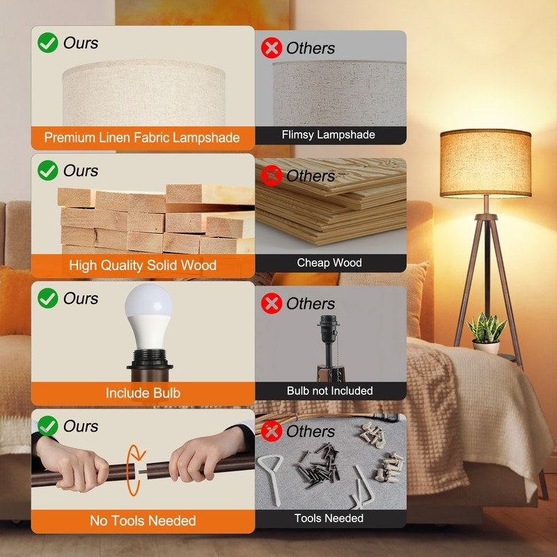63 in. Walnut Tripod Floor Lamp with Solid...