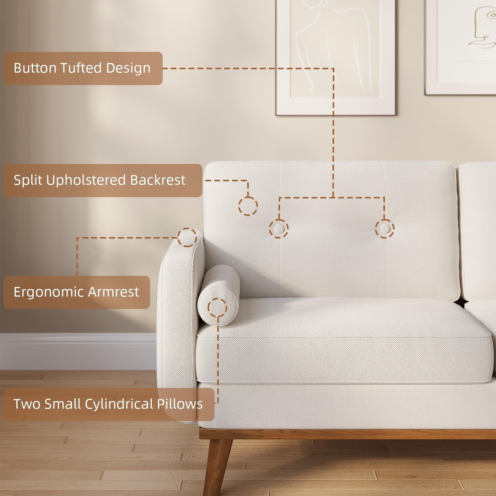 Mid Century Modern Couch,: This loveseat combines mid-century modern design, linen upholstery, and a solid wood frame. The combination of modern craftsmanship and classic aesthetics adds a unique charm to your living space.