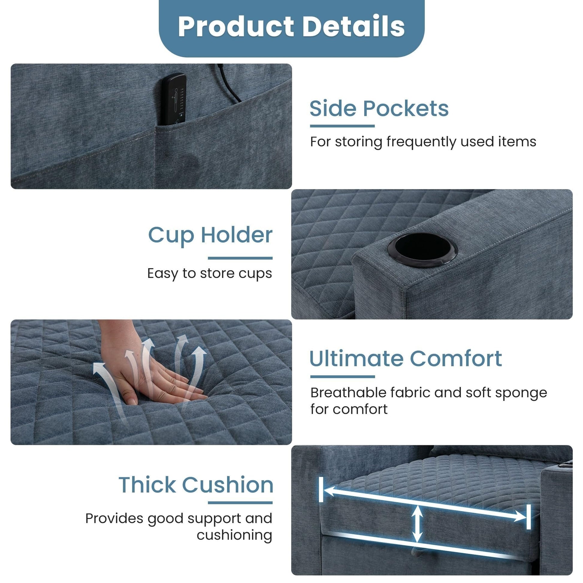 66.93Metal 2-Seater Sleeper Sofa Massage and Heat Pillow...