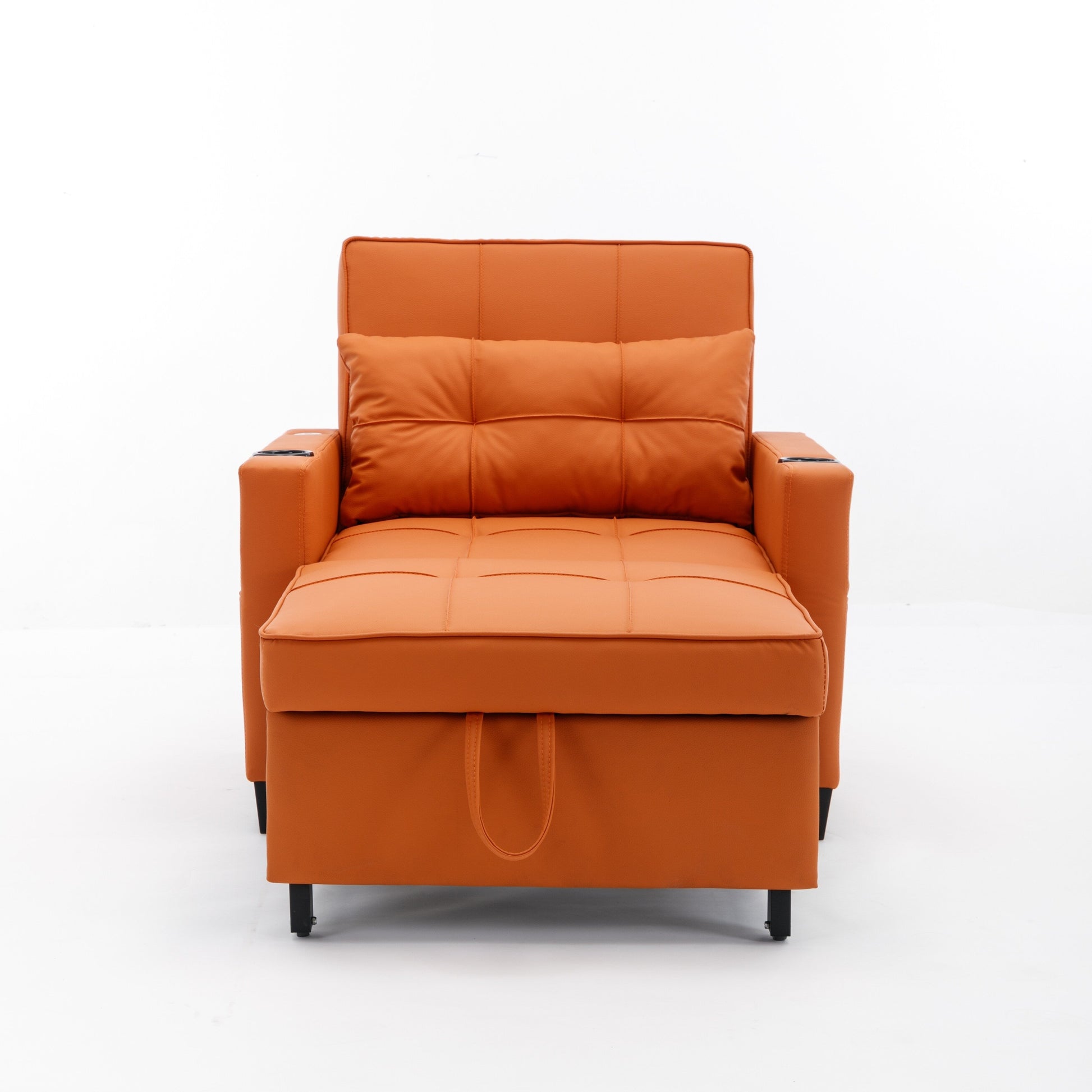 The folding couch is made of a high-quality steel frame, ensuring best durability in daily use and can withstand 330 lbs. The couch bed's breathable, wear-resistant, and easy-to-take-care-of leather fabrics and high-density sponge help you release the whole body from head to feet. There are built-in cup holders and side pockets to meet your daily needs. We are committed to integrating multiple humanized designs to create more convenience for your life.