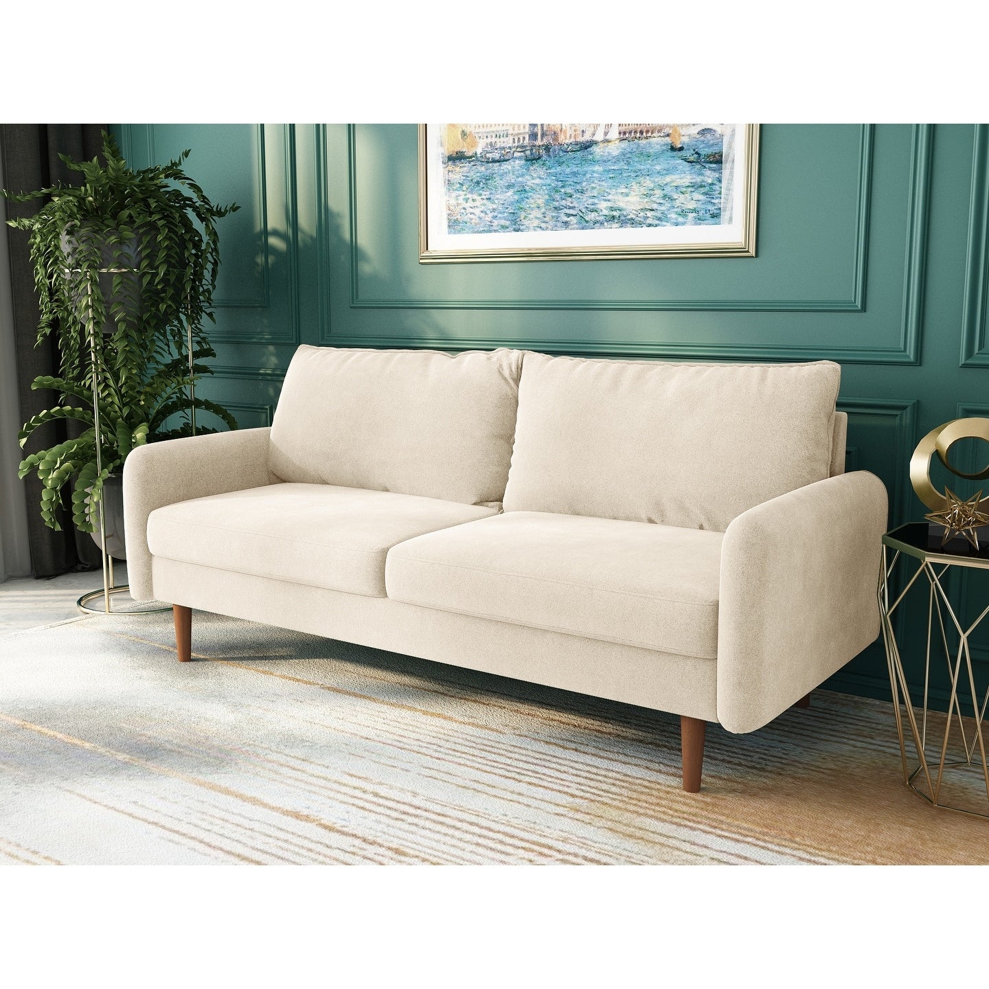 Relax in modern comfort with this glamorous 70'' Velvet Square Arm Sofa, perfect for any home décor. Made with quality materials and modern design, this contemporary sofa is sure to catch the eye of anyone who enters your home. Choose from a variety of colors to add some charm to your space. Assembly is required, and you'll find all the necessary parts including legs, hardware bag, cushions/pillows, and arms in the zipped area underneath.