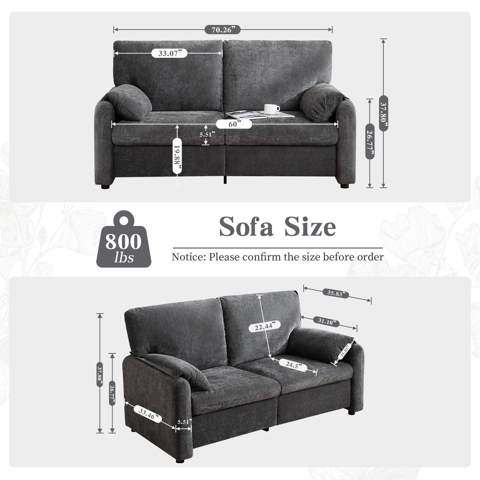 71.28 Chenille 2-Seater Sofa, Cloud-Like Comfort with High-Resilience...