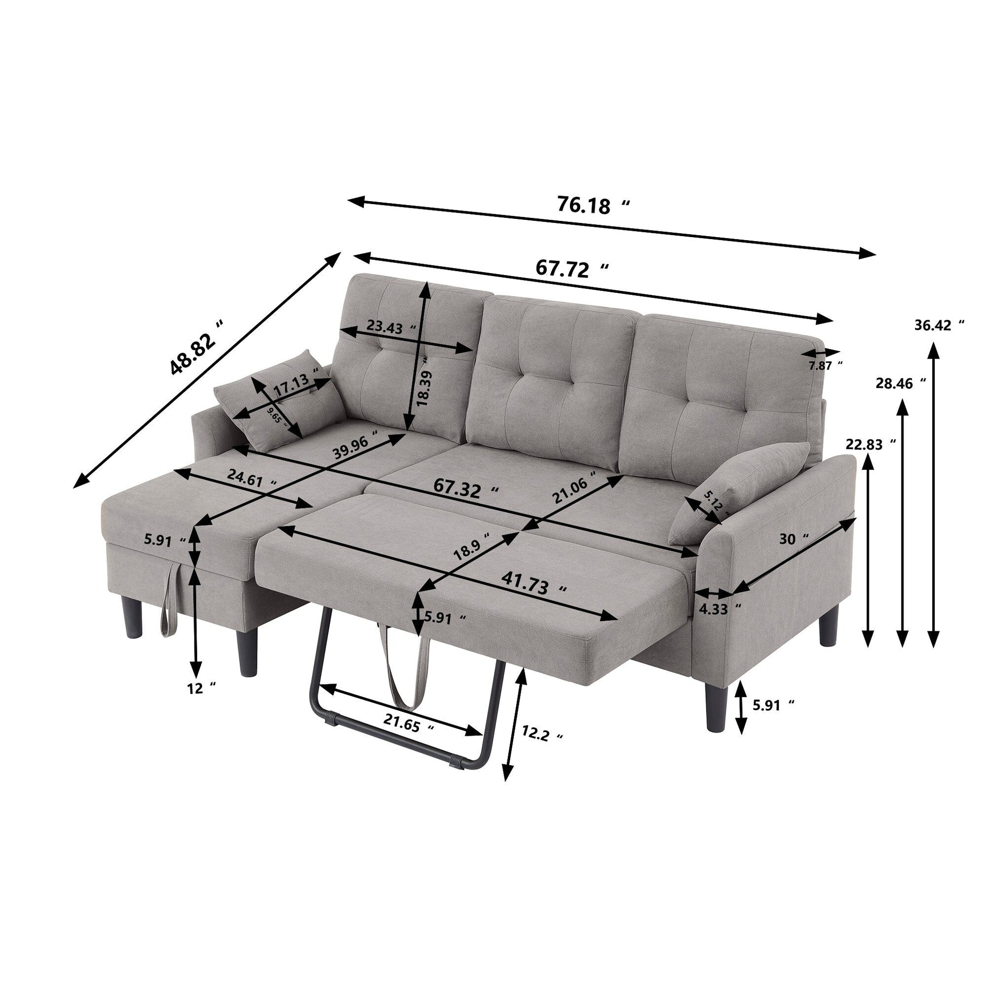 1.Reversible Storage Chaise: Our Sleeper Pull Out Sofa Bed features a versatile reversible storage chaise, allowing you to customize your living space while maximizing functionality and comfort.