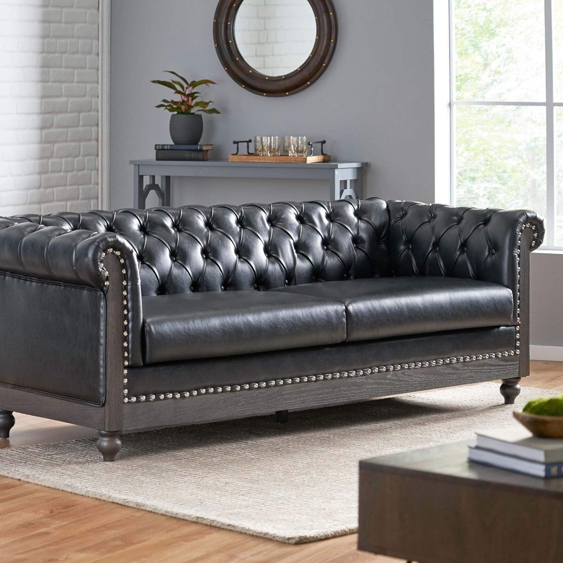 78.75'' PU Leather 3-Seater Sofa with Wooden Legs...