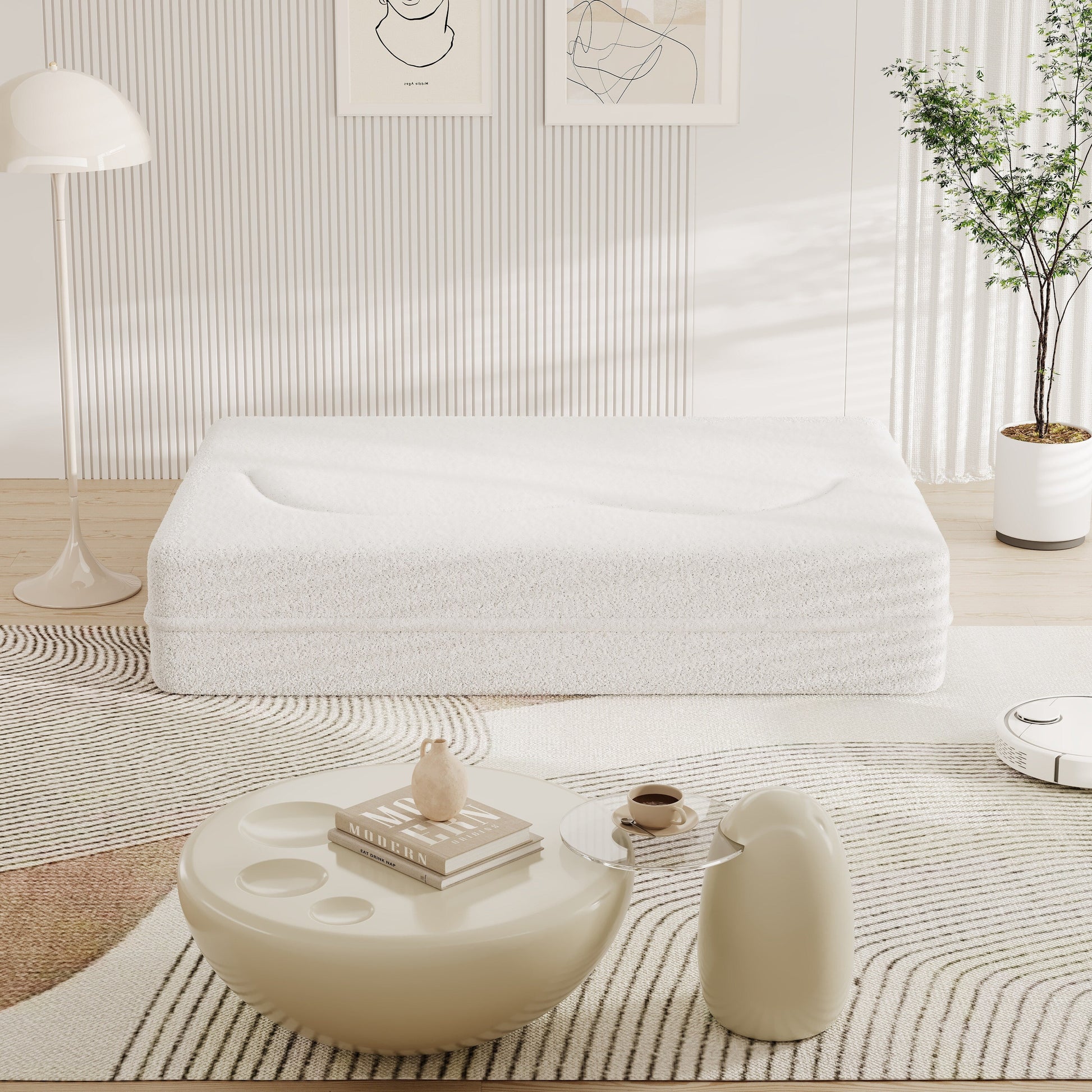 78 Convertible Teddy Fabric Loveseat Foam-Filled Floor Sofa...