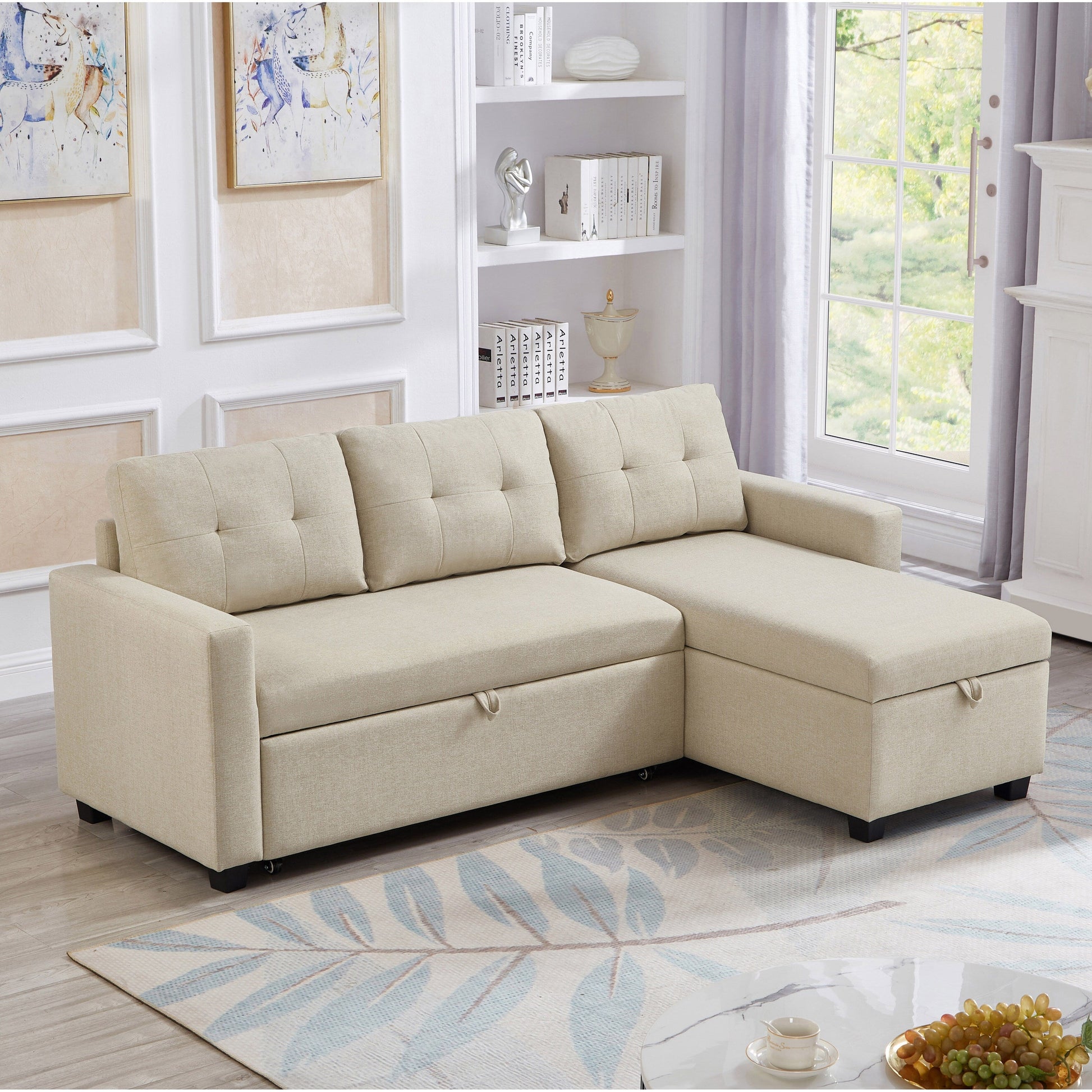 81.5'' Upholstered Convertible 3 Seater Sleeper Sofa with Pull-Out Bed, Reversible Storage Chaise, and Back Cushions
