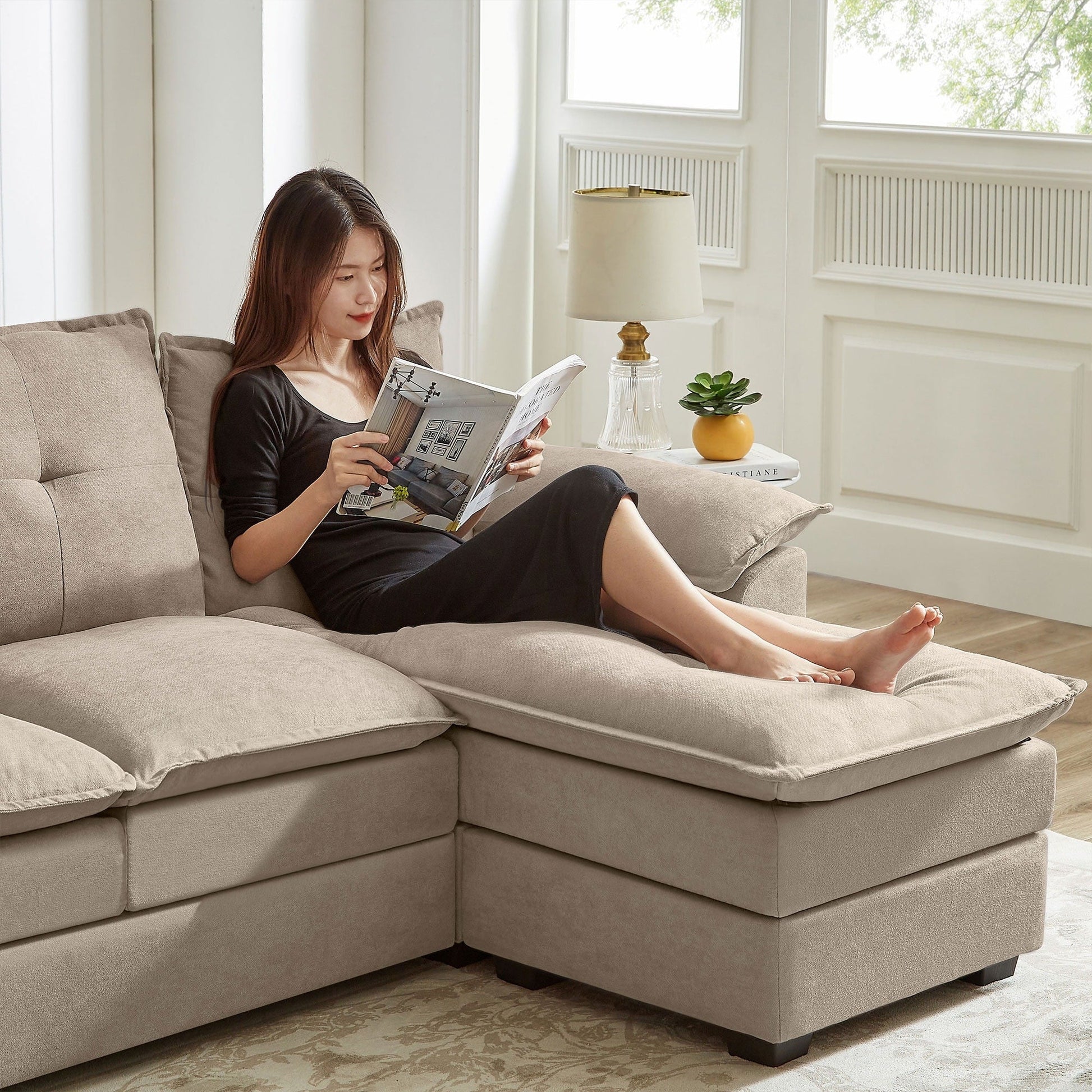 Luxurious Design: Elevate your living space with this L shaped sectional sofa featuring a super soft cloudy style design that exudes elegance and comfort.