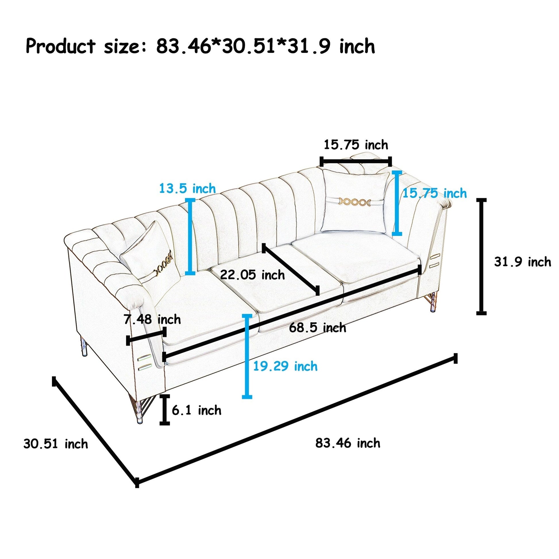 82.67 Modern Velvet 3-Seater Sofa, Vertical Channel Tufted...