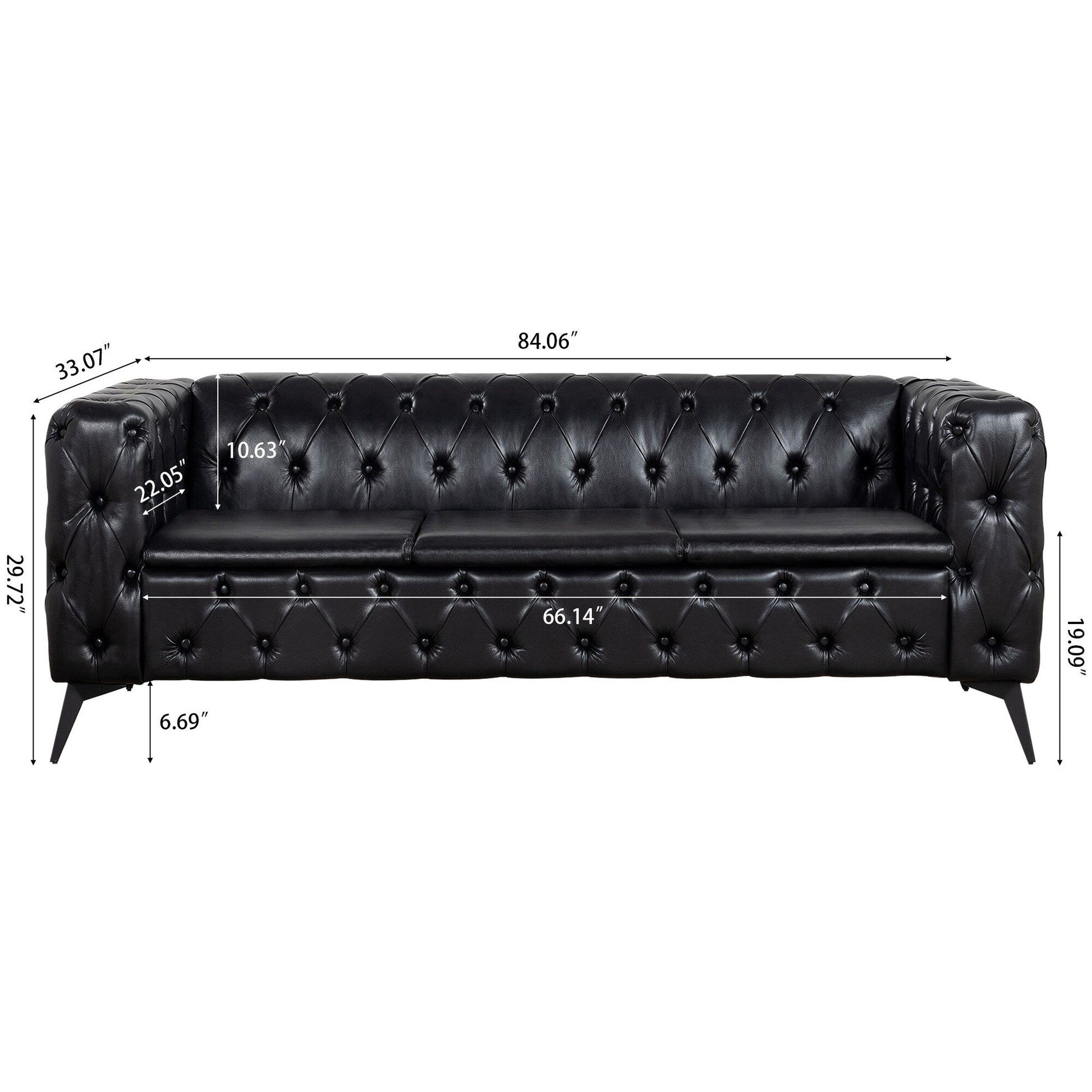84.06 PU Traditional Square Arm 3-Seater Sofa with Removable Cushions, Pocket Spring Seat, and Iron Sled Base