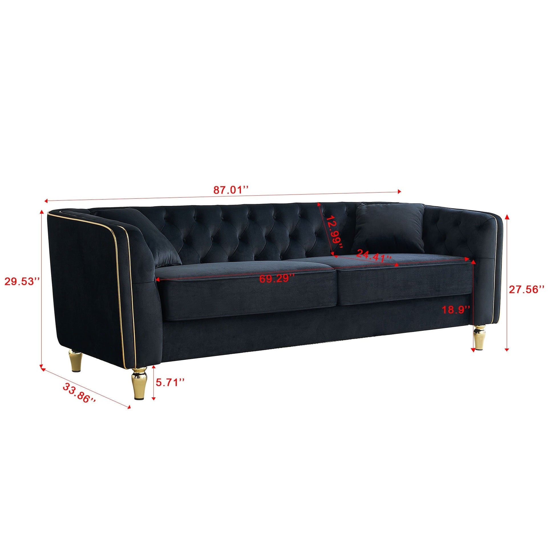 87.01 Velvet Corduroy Modern Classic 3-Seater Sofa with...