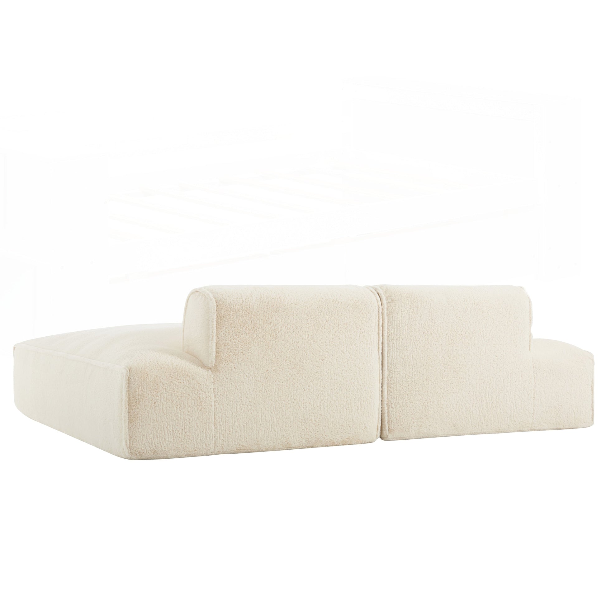 The edge - pressing design adds more three - dimensionality, adding a touch of sophistication to your living space.The sofa is completely made of sponge material and has no wooden frame, making it easy for users to move, it is friendly to infants, toddlers and the elderly.At the same time,it can be freely combined, eliminating the need for assembly.it's ready to use right out of the box, saving you time and effort. The two modular pieces can be freely rearranged to suit your space and preference. The armrests and backrest feature a minimalist line design, creating a clean, elegant look that fits seamlessly into Modern interior decoration style.