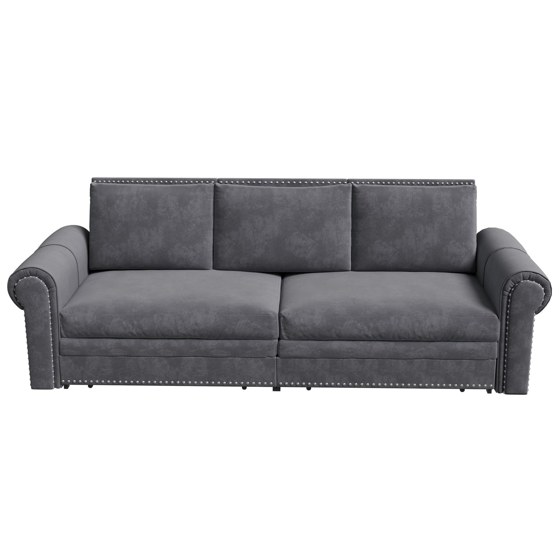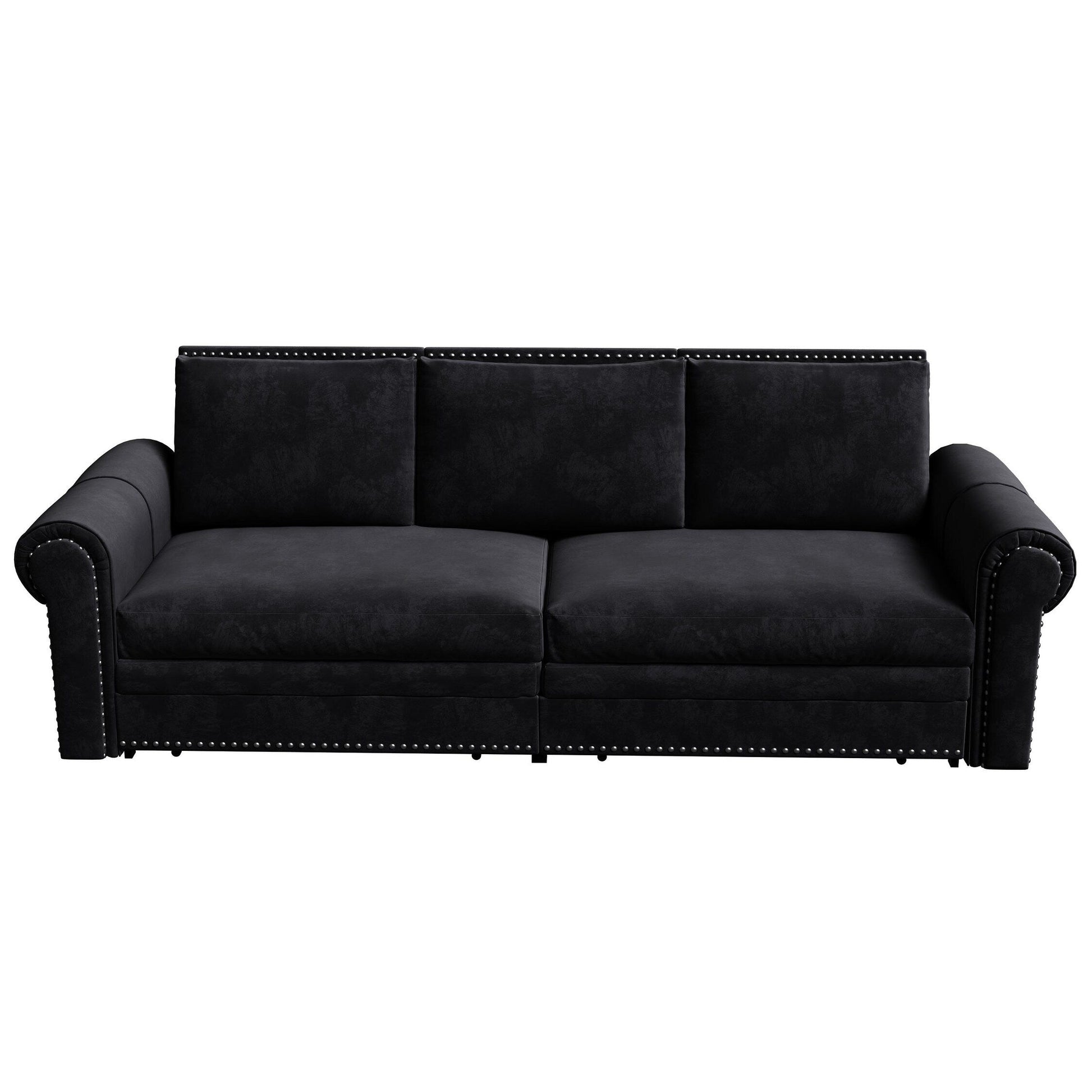 93.7Velvet 3-Seater Sleeper Sofa 3-in-1 with Rolled Arms...