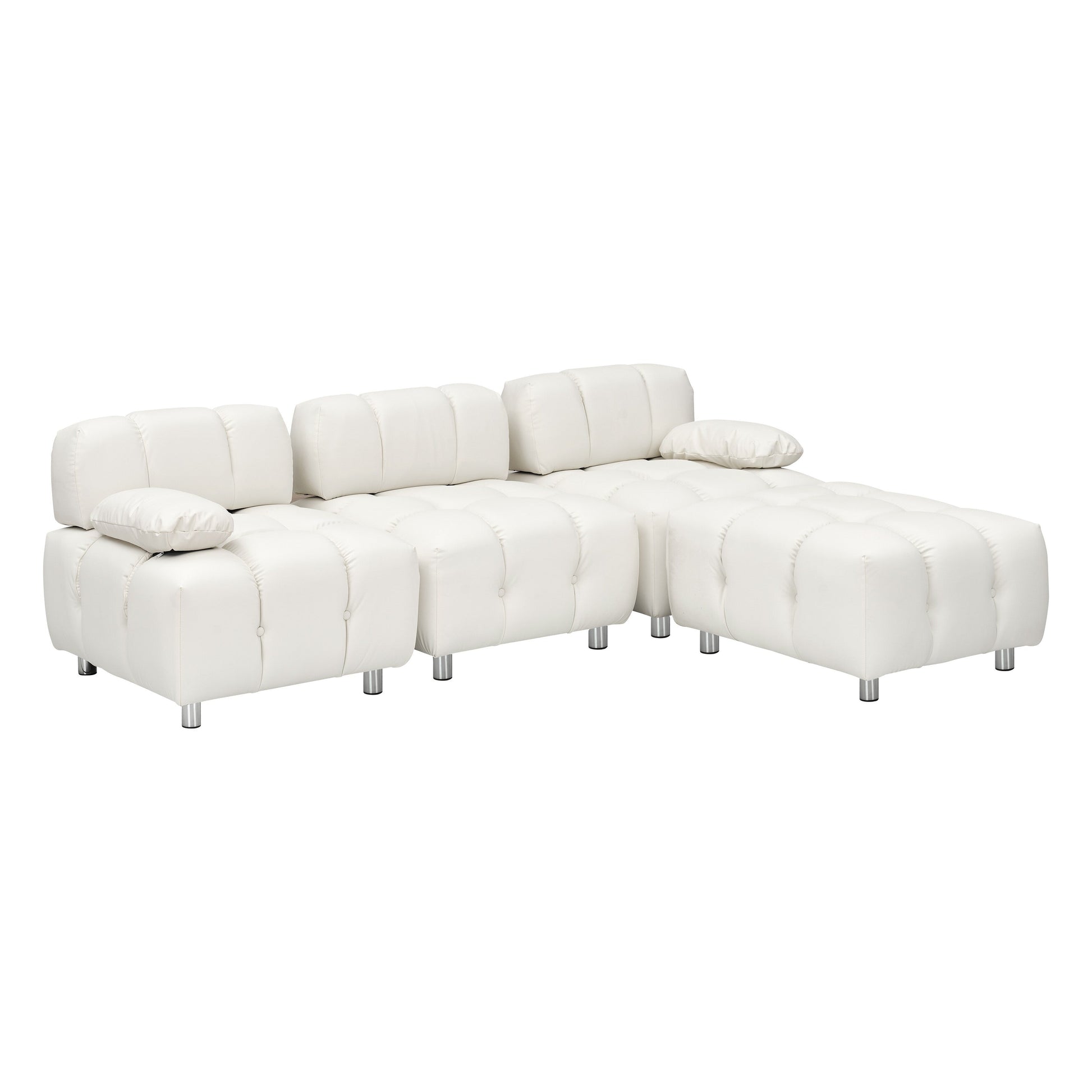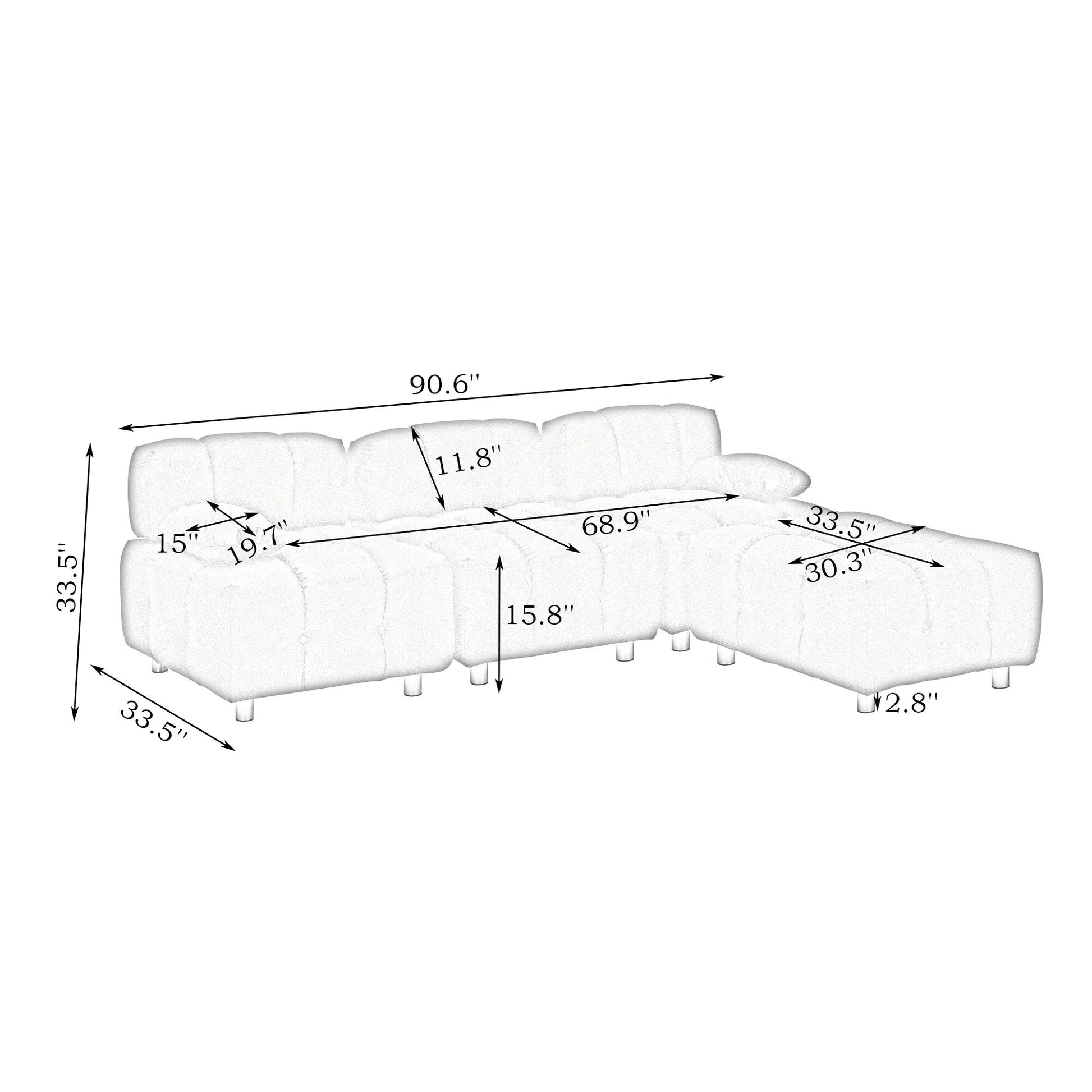 A 90.60-inch technology cloth white sofa, waterproof, stain and cat scratch resistant, can comfortably sit in the apartment bedroom without taking up space.