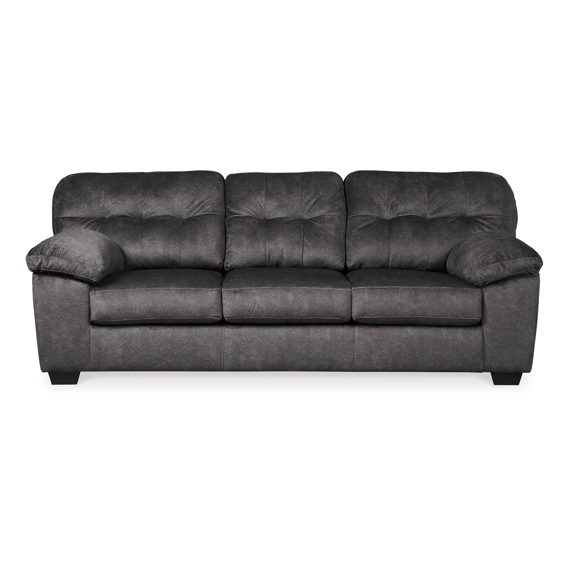 Experience the perfect blend of contemporary flair and plush comfort with this exquisite sofa. Designed with tufted box cushioning and thick pillow-top armrests, this sofa delivers a modern yet cozy appeal. Its soft granite gray fabric and supportive platform foundation ensure both style and long-lasting durability. Check out our Acai collection for more options.