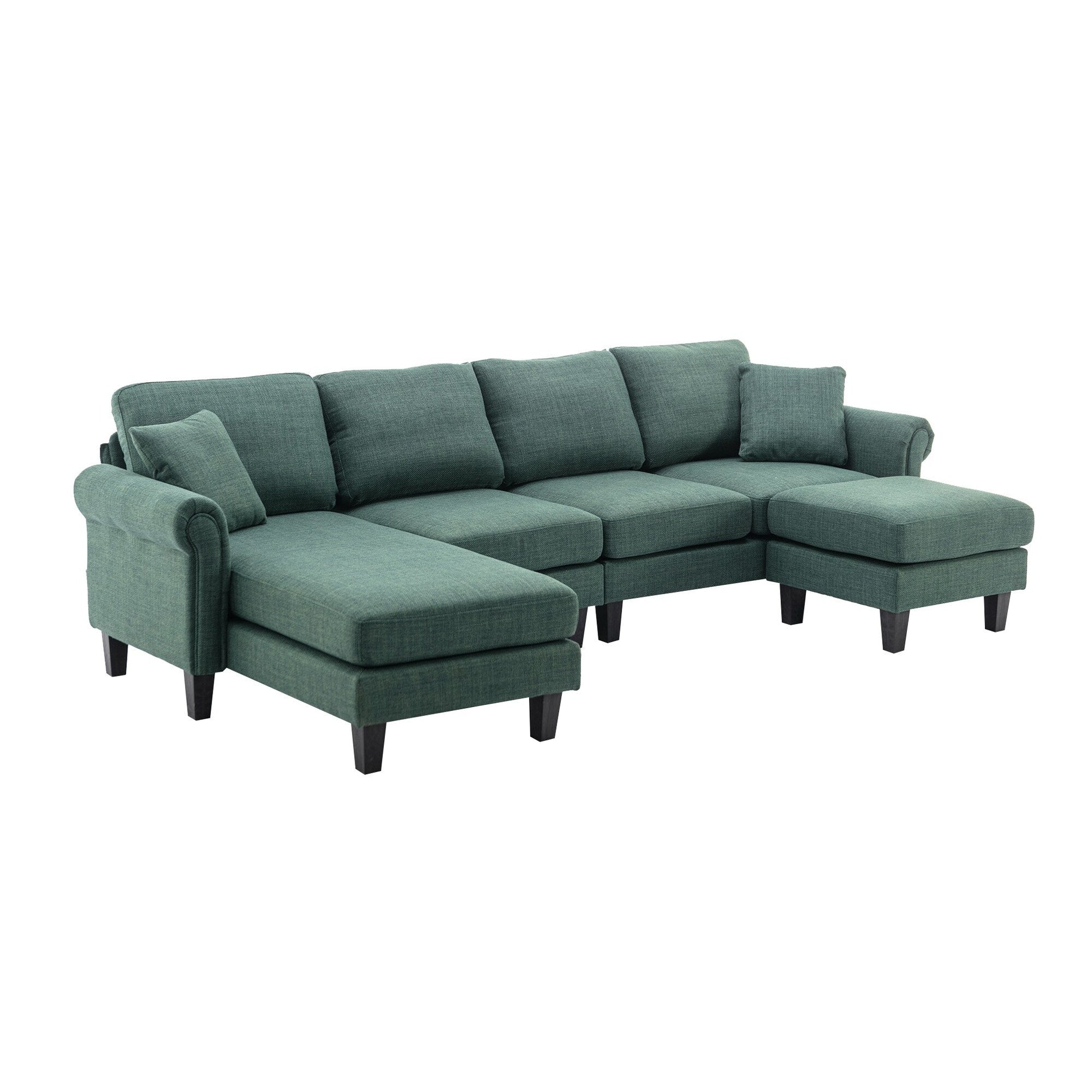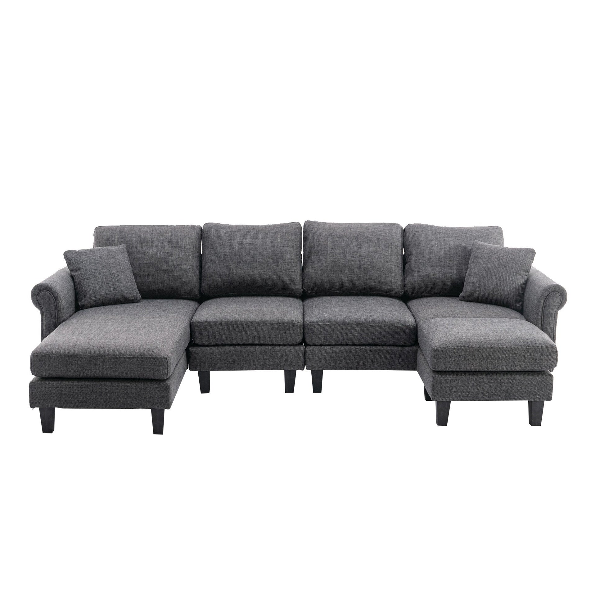 This sofa is U-shaped modular sofas, Each seat can be removed. The cushion cover is made of soft and durable fabric that is easy to clean. You can remove the cover and wash it in the machine to keep it fresh and hygienic.