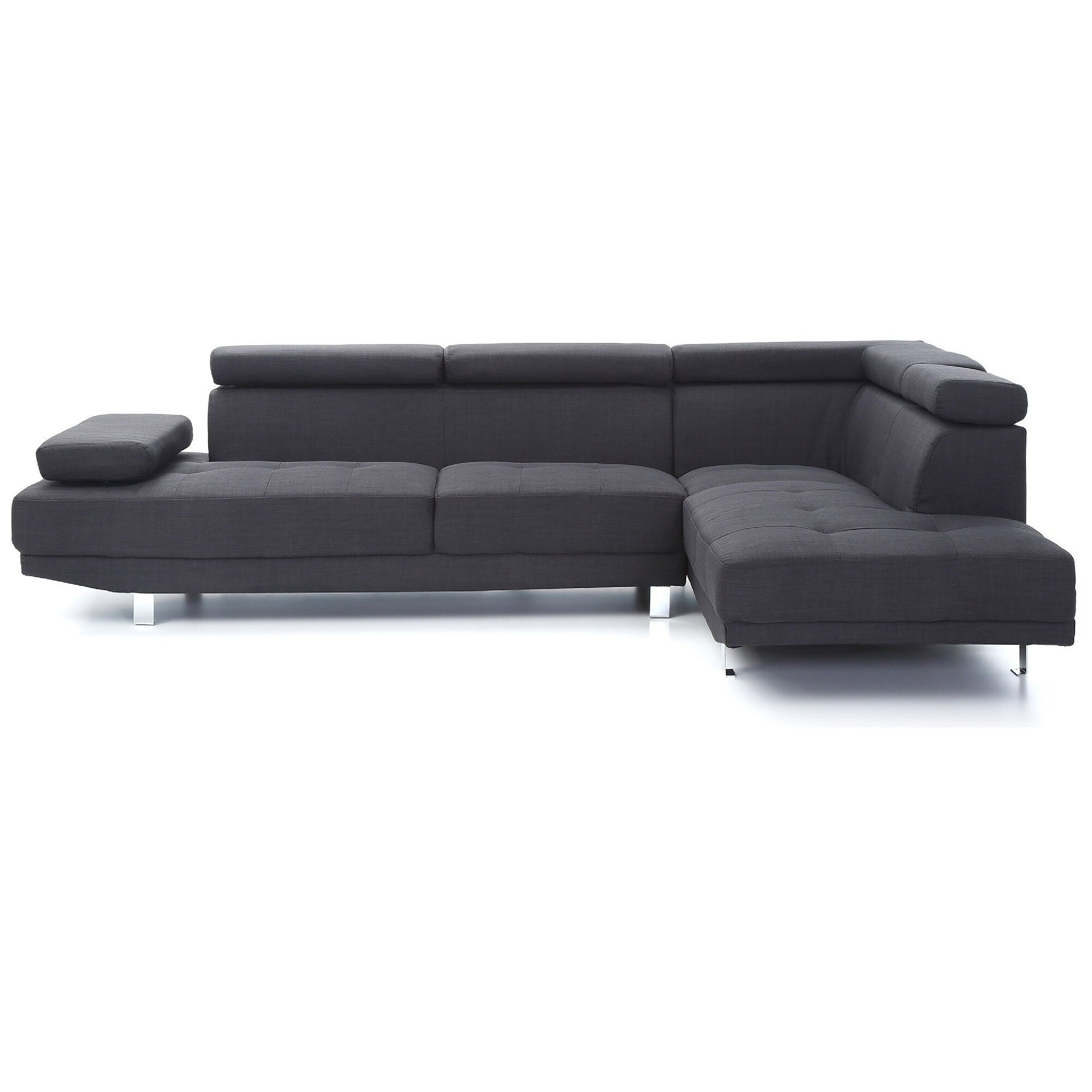 Upgrade your living space with this twill L-shaped sectional sofa, featuring adjustable armrest and headrests for personalized comfort. Its sleek contemporary design is complemented by chrome legs, while pocket coil seating ensures durability and support. Crafted with a hardwood frame, this sectional combines style with lasting quality for your home.