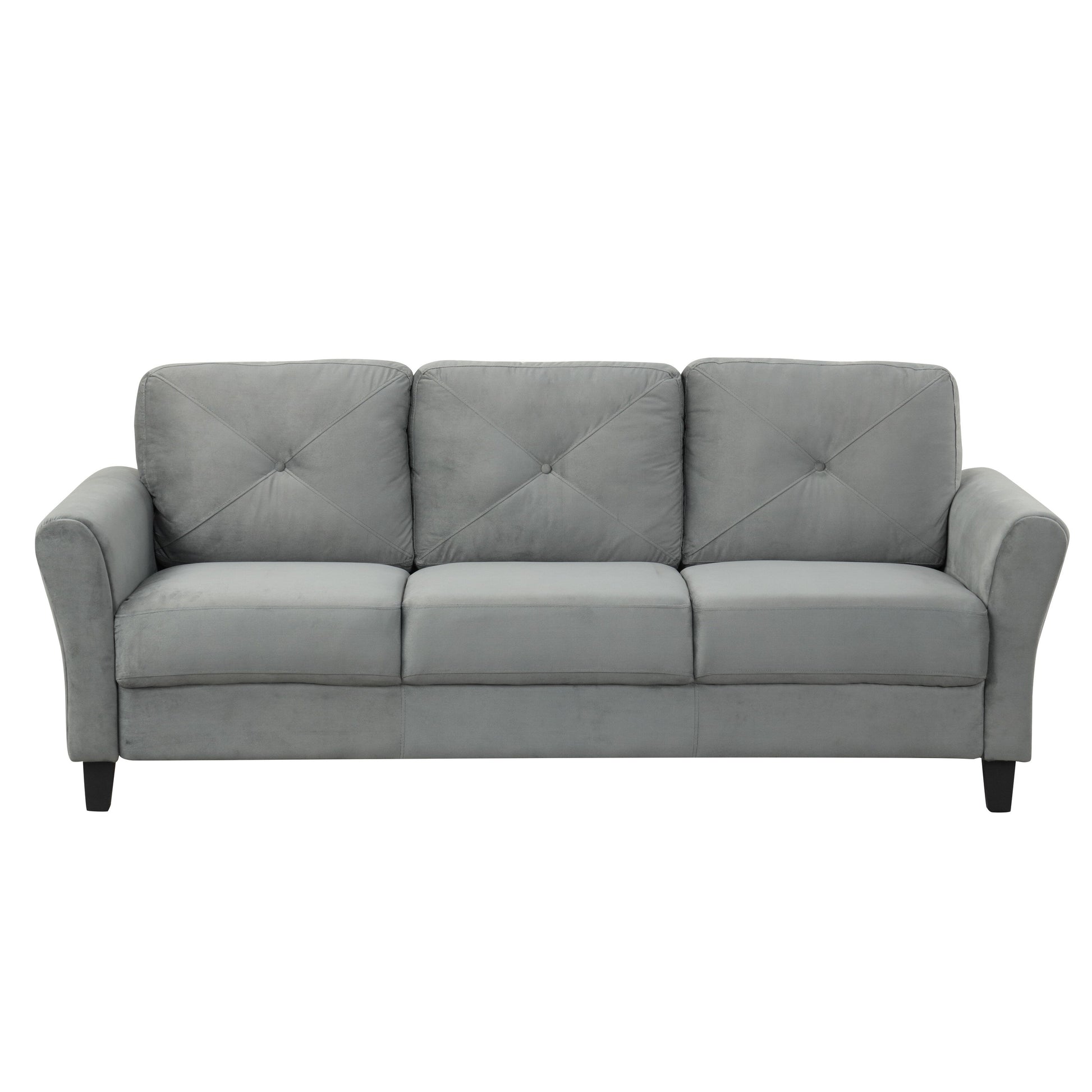 Antique Dark Grey Polyester 3-seater Sofa with Wood...