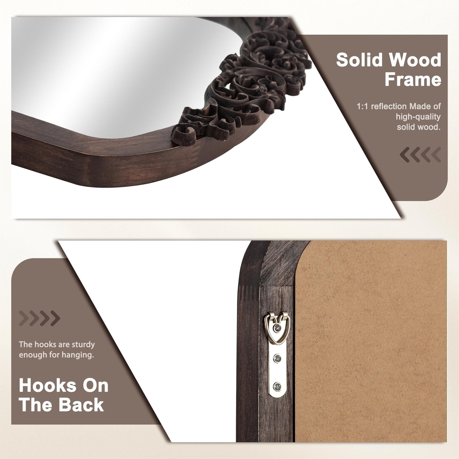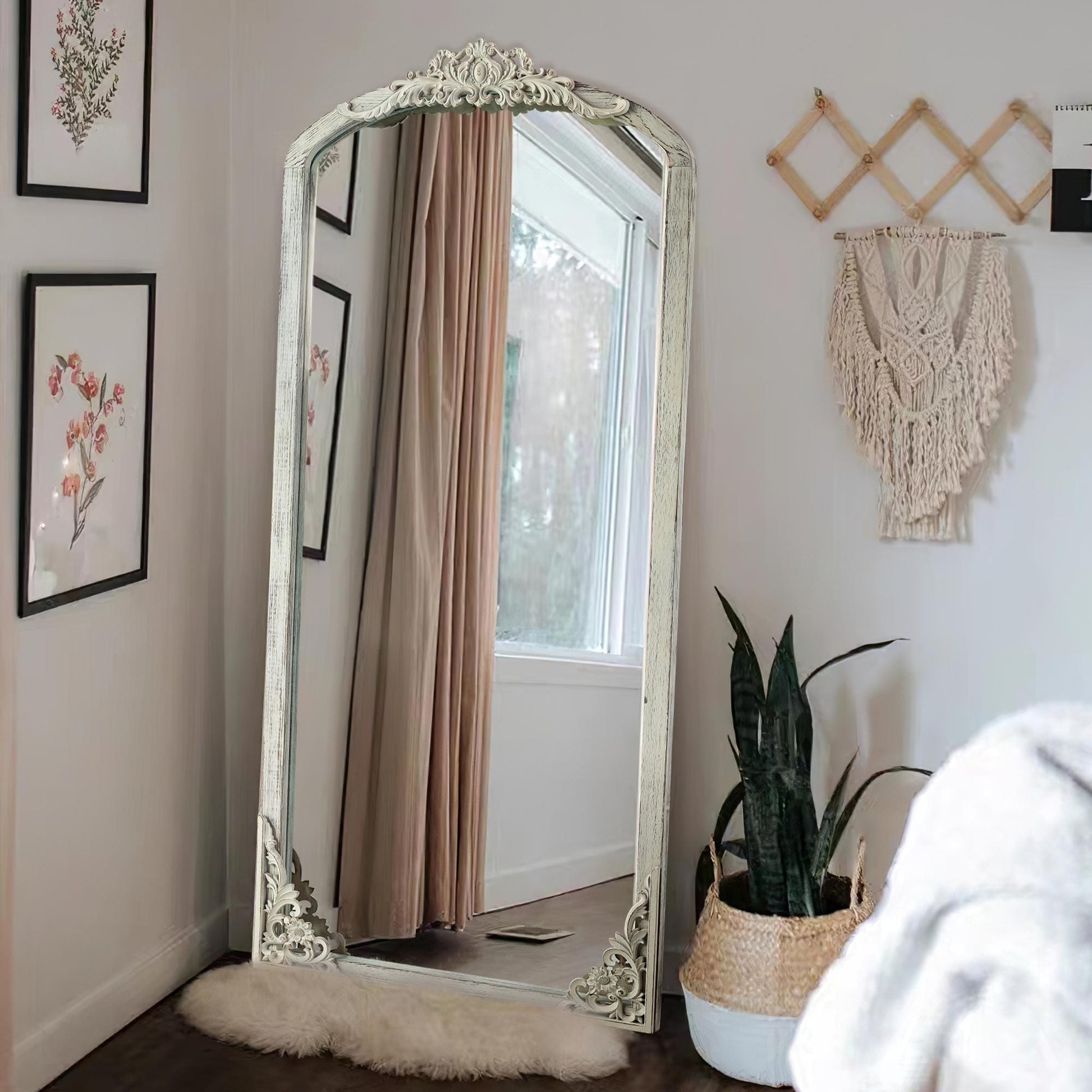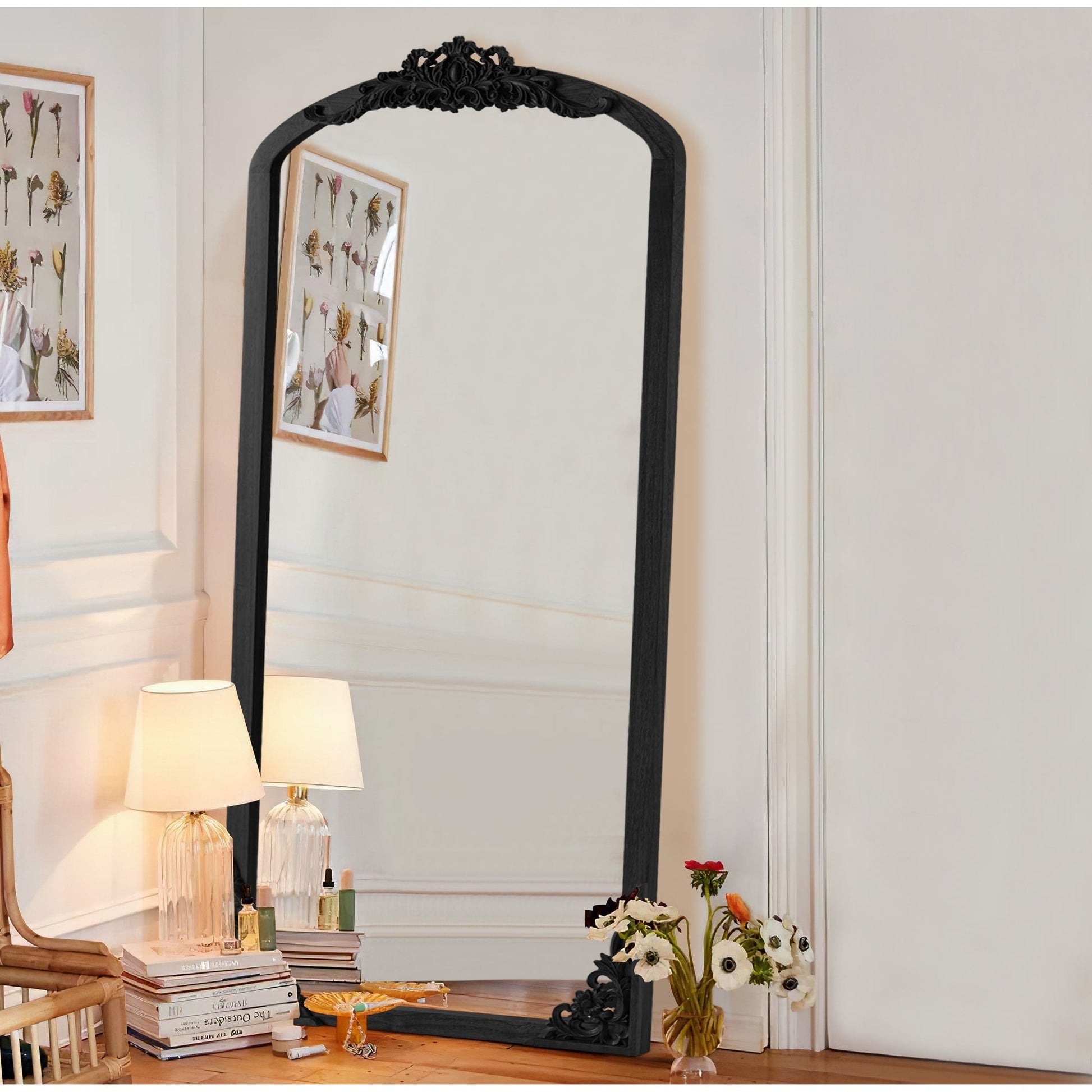 Arched Full-Length Solid Wood Carving Floor Mirror
