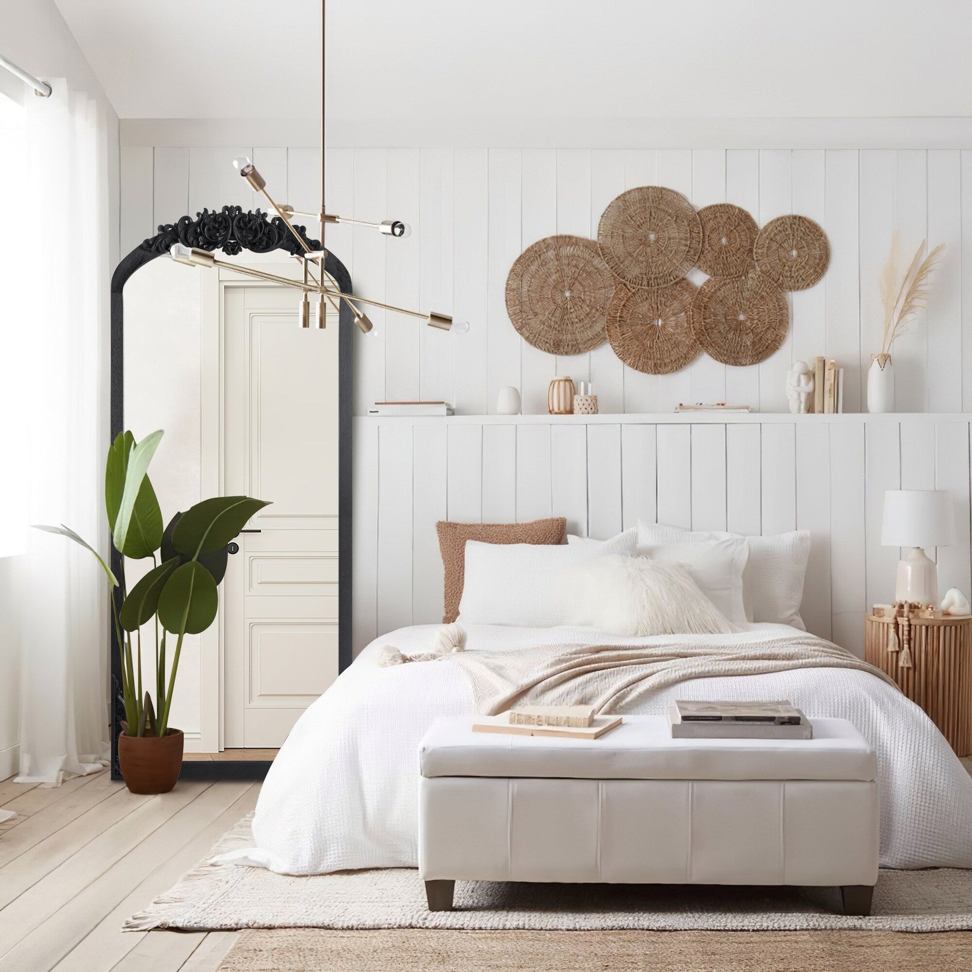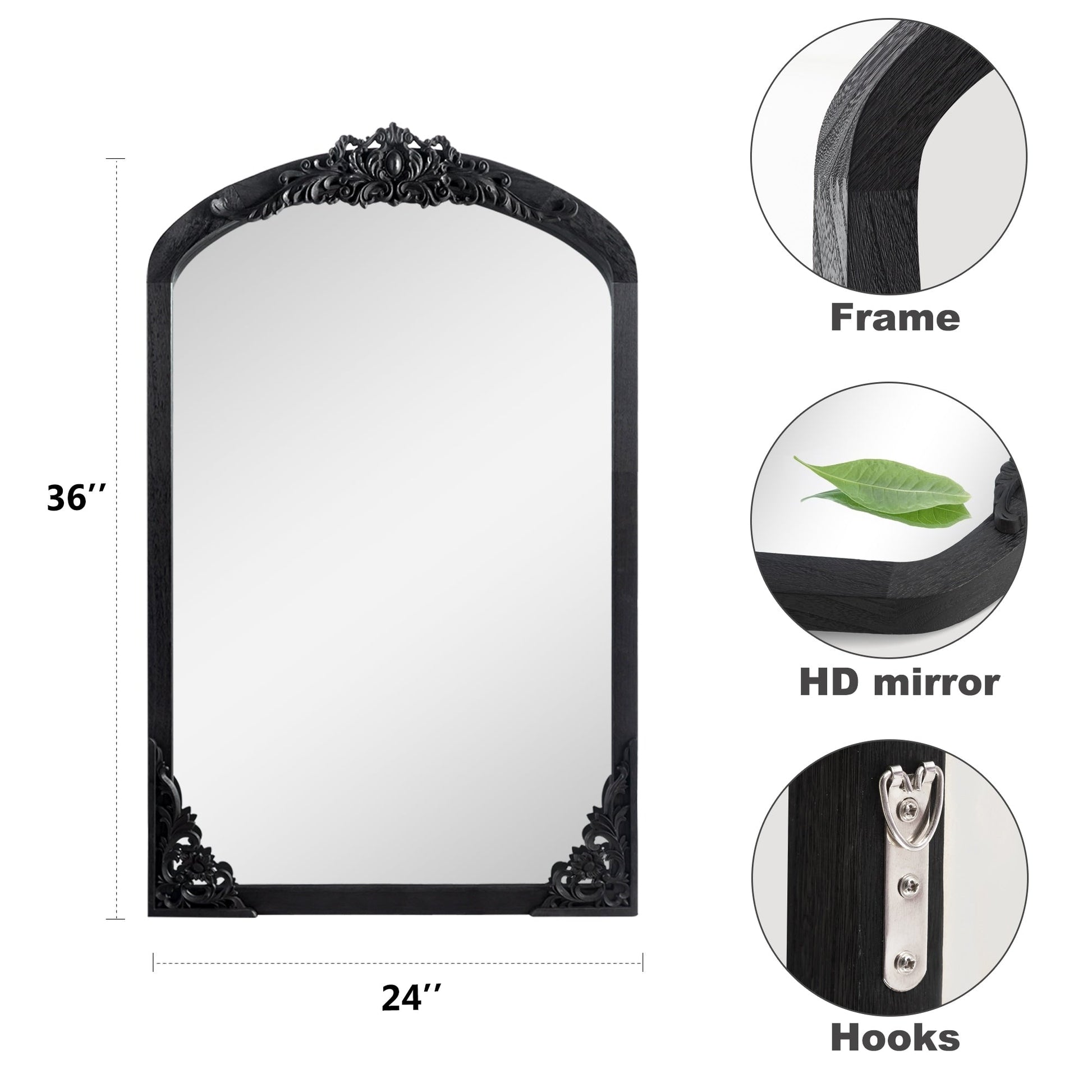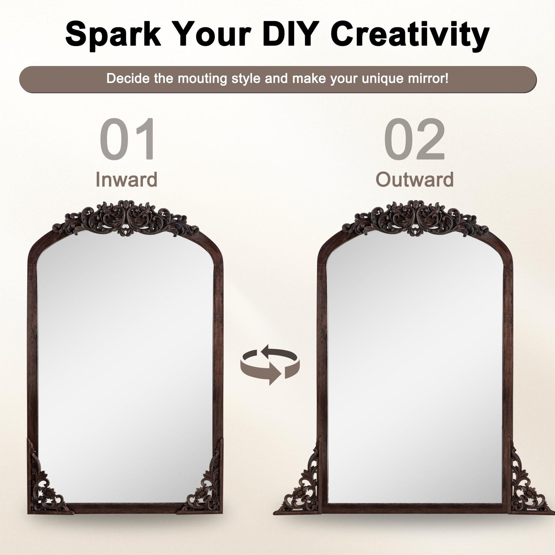 Arched Full-Length Solid Wood Carving Floor Mirror