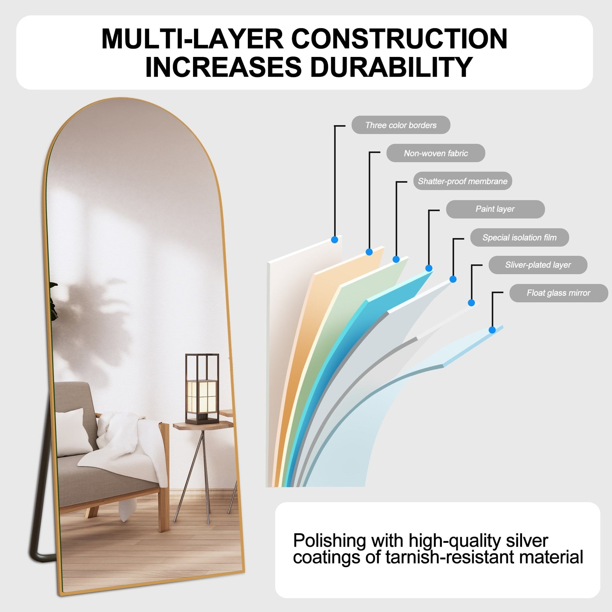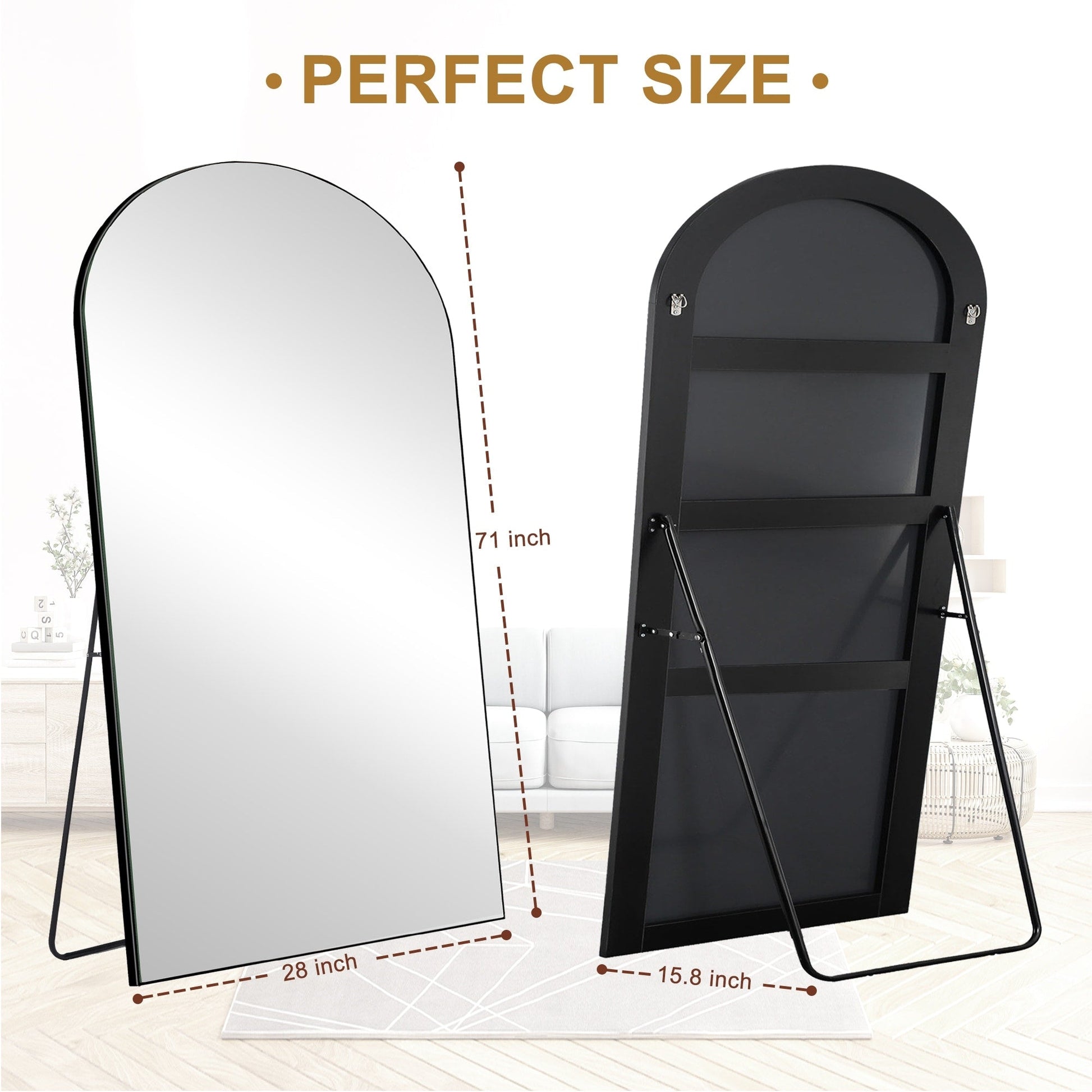 Arched Full-Length Standing Wood Floor Mirror, Wall Mirror