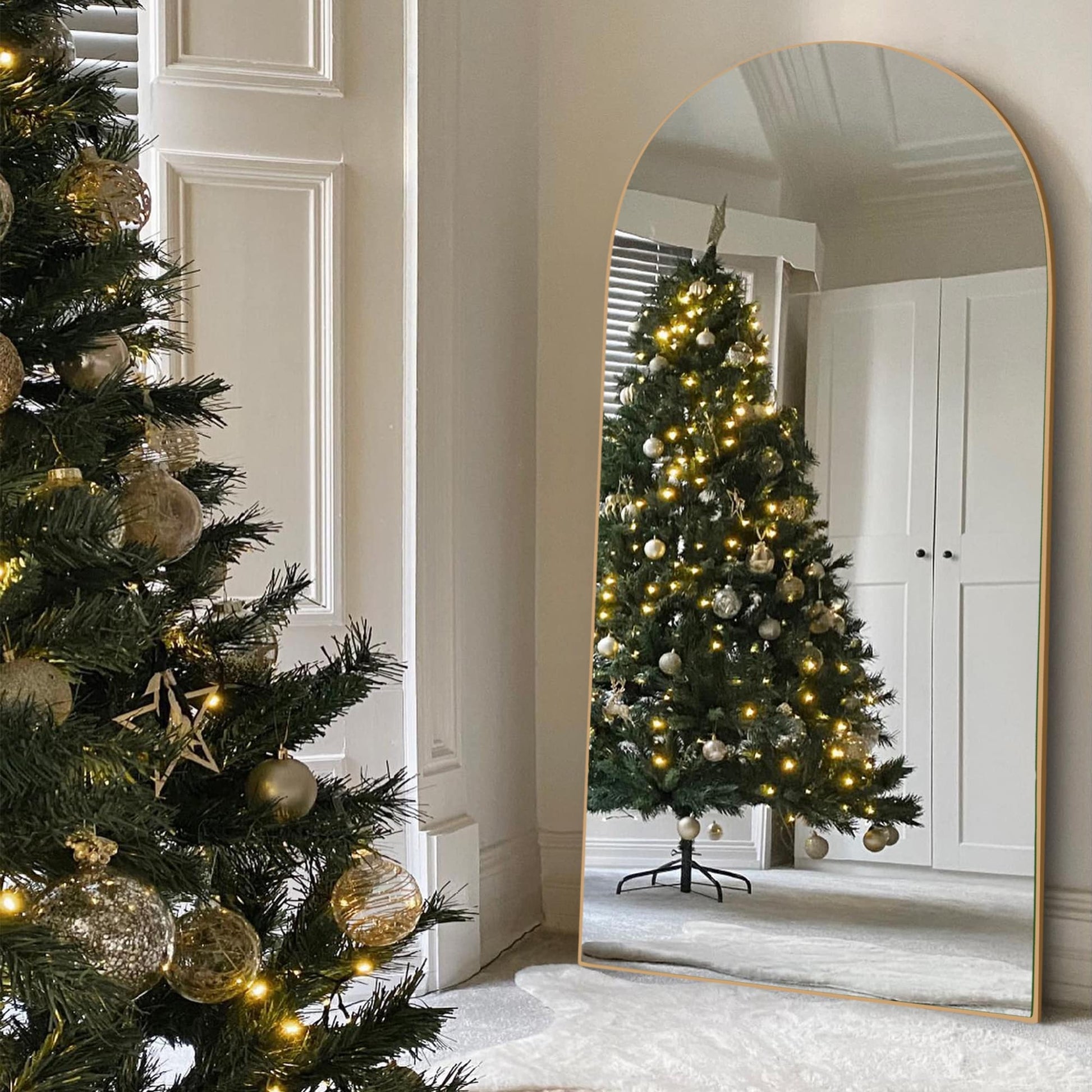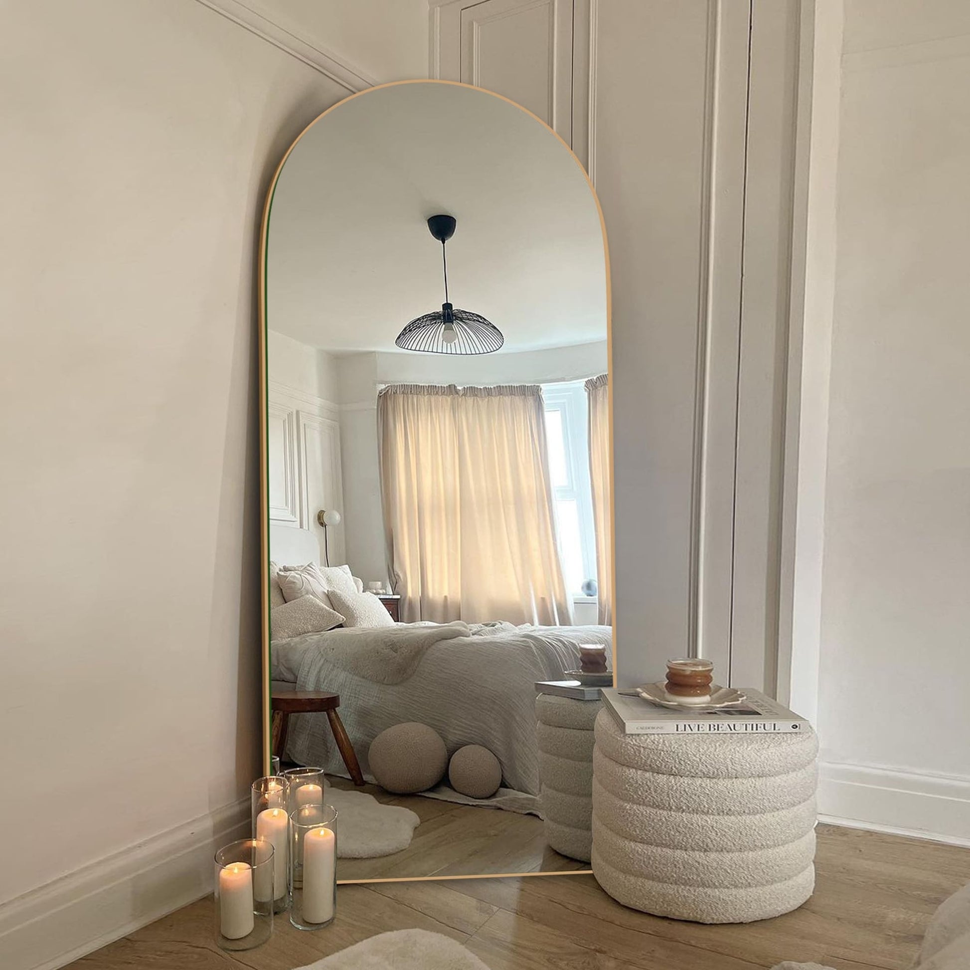 Arched Full-Length Standing Wood Floor Mirror,...