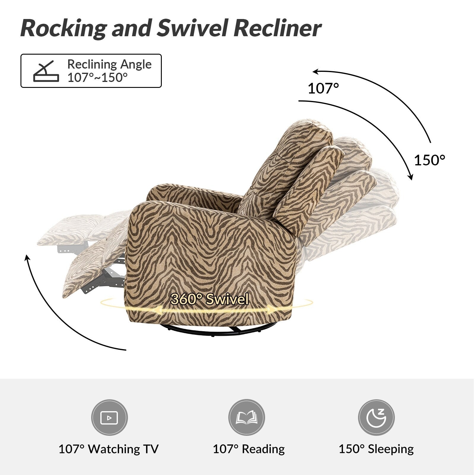 Unwind in style with the Arlette Manual Swivel Recliner with Tufted Back. Whether you're relaxing in your living room or bedroom, this chair provides both comfort and contemporary charm. Crafted from sturdy solid and manufactured wood, this rocker recliner features a wingback and tufted design that exudes simplicity and fashion. With the swivel function, you can easily turn in and out of conversations. Recline and enjoy long-term sitting or TV viewing with the side button, which allows you to adjust the backrest from 90 to 150 degrees and the footrest on demand. Assembly is a breeze, taking only 15 minutes to complete. This recliner is perfect for any home theater, media room, or master bedroom. (Weight capacity: 300 lbs)