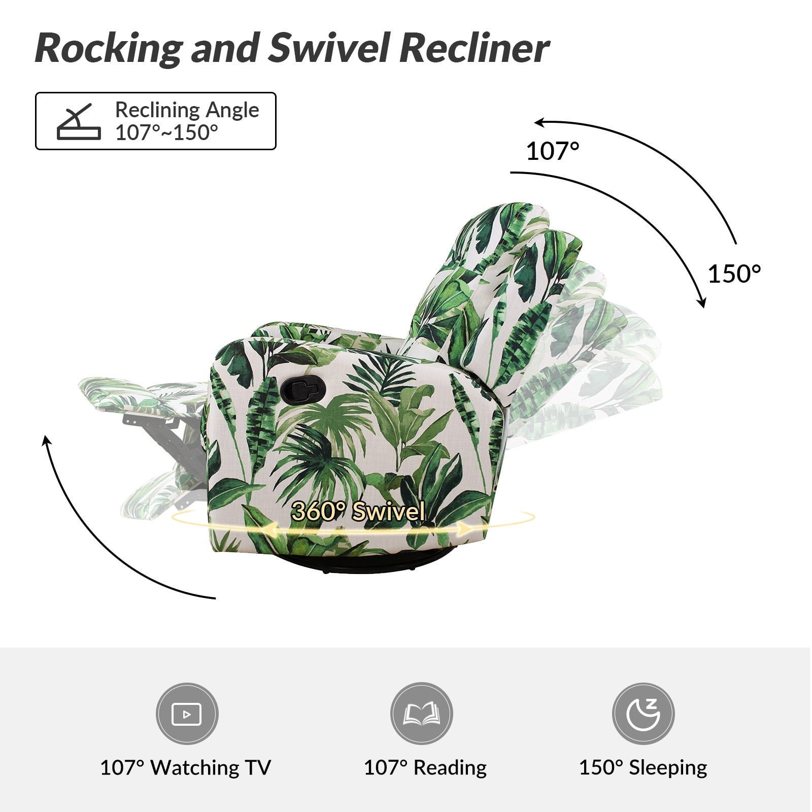 Arlette Contemporary Floral Manual Swivel Recliner with Tufted Back