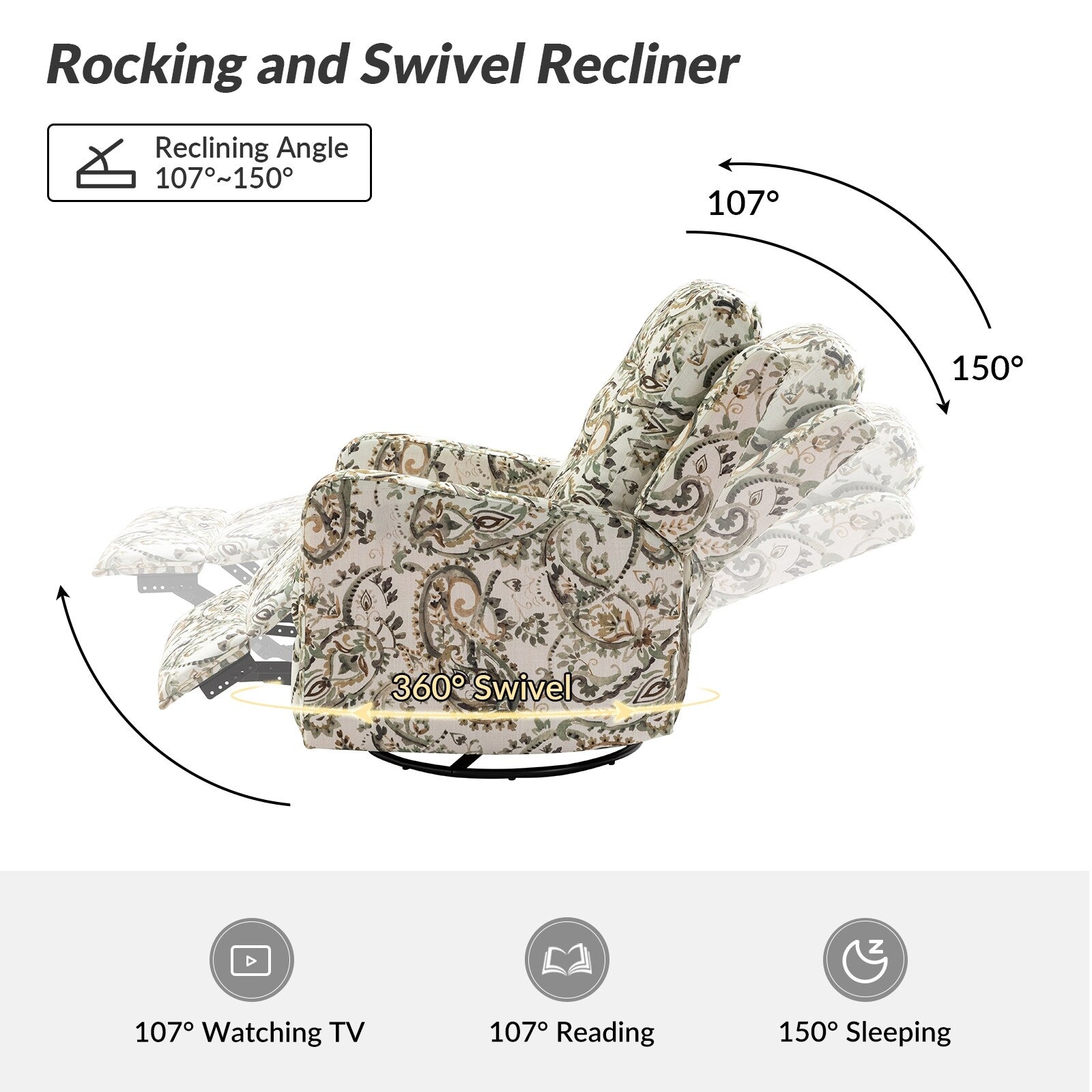 Arlette Contemporary Floral Manual Swivel Recliner...