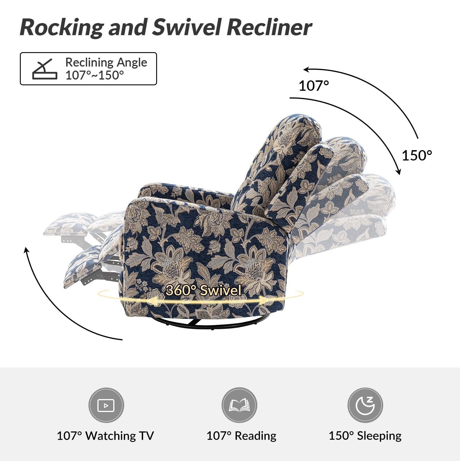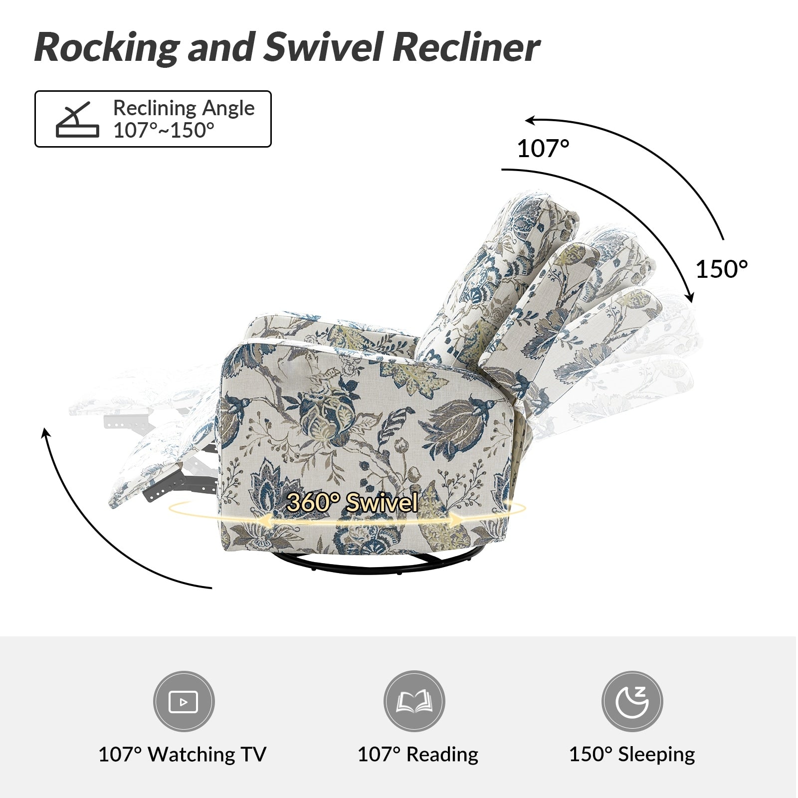 Arlette Contemporary Floral Manual Swivel Recliner with Tufted...