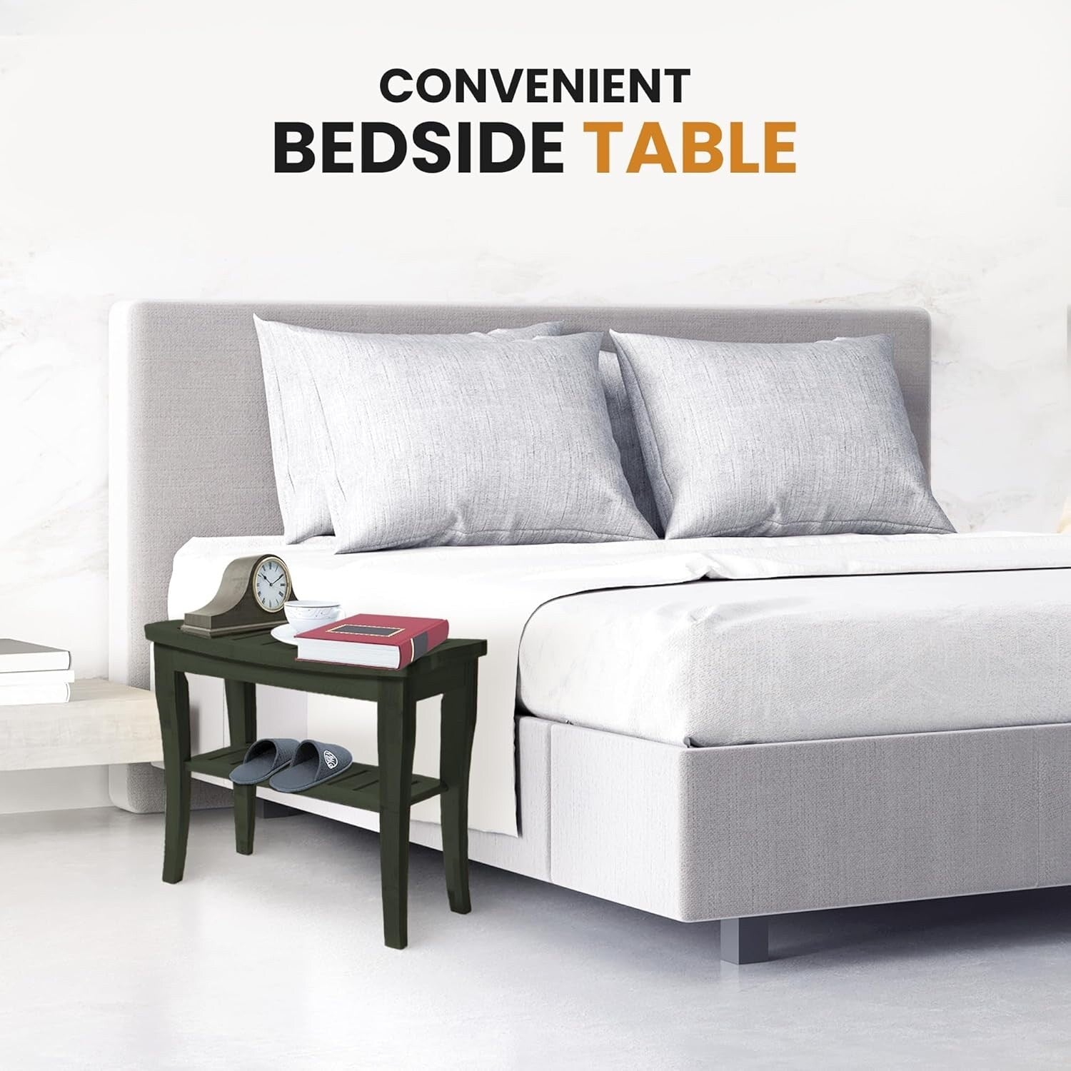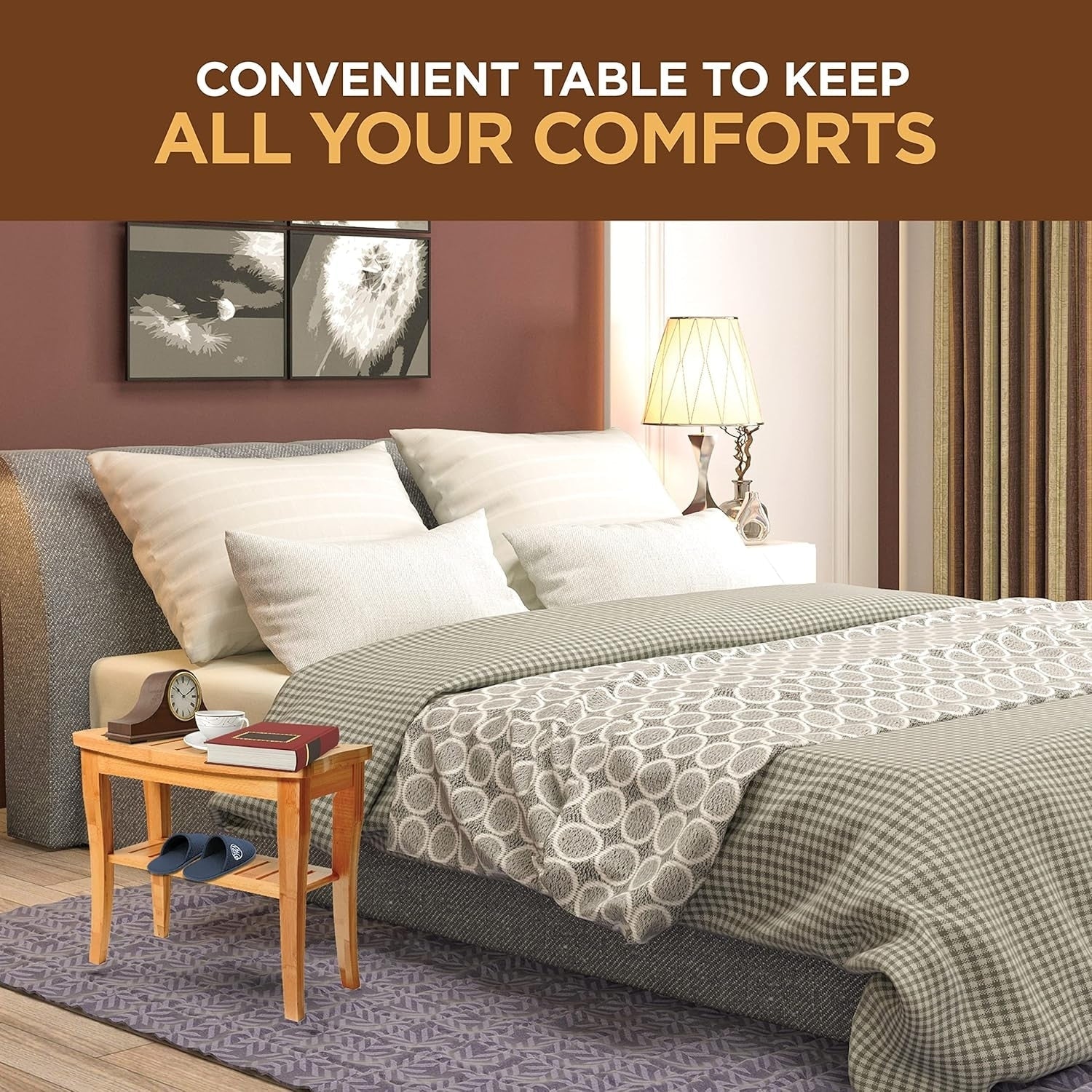 Bamboo Shower Bench Spa Stool - Wood 2-Tier Seat, Foot Rest Shaving Stool with Non-Slip Feet + Storage Shelf