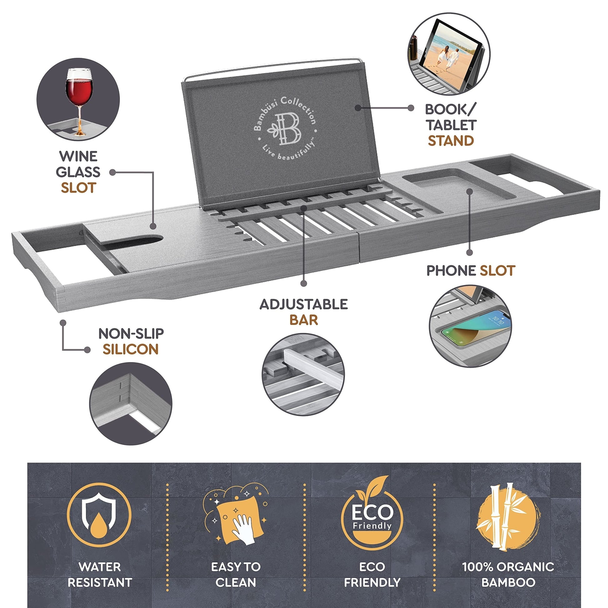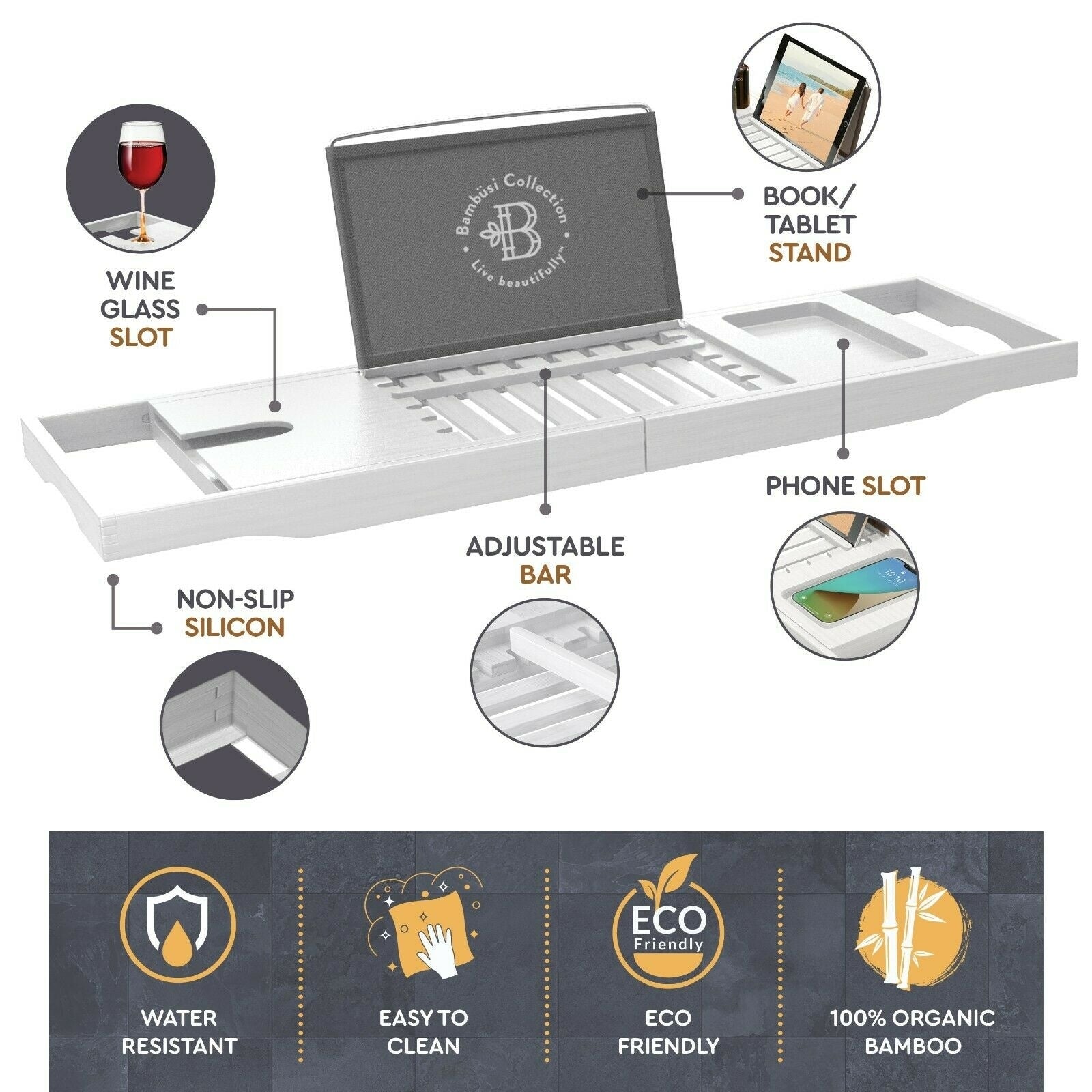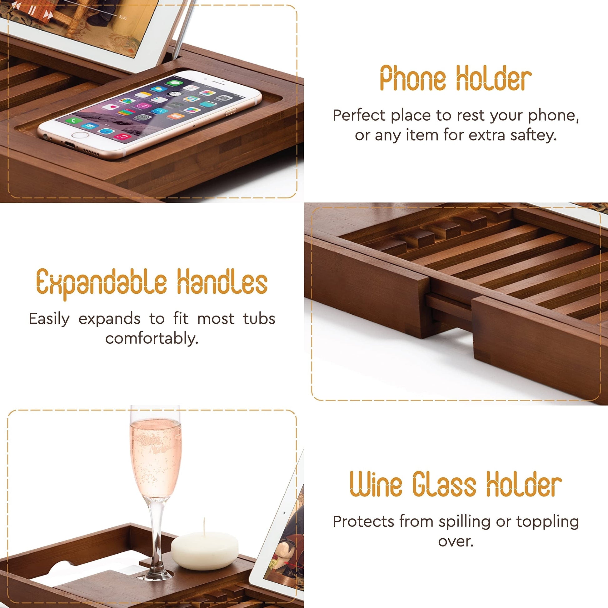 Bathtub Tray for Tub - Adjustable Bamboo Bath...