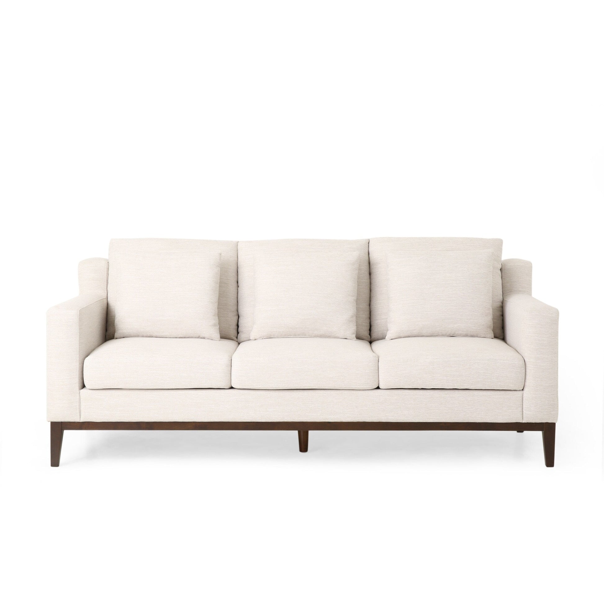 Beige 3-seater Sofa with Wood Legs and Matching Pillows