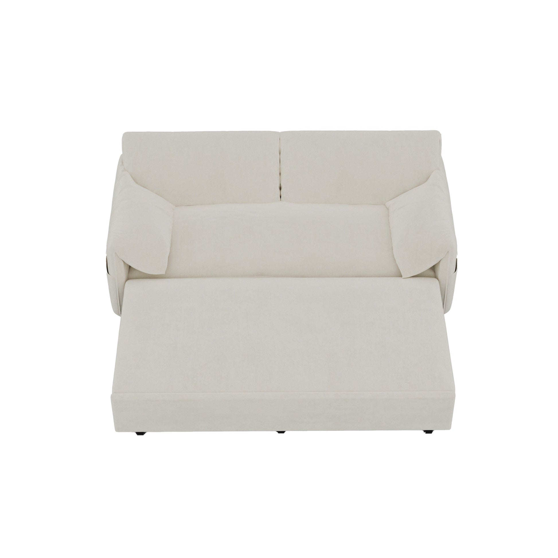 Beige 63.8 3-in-1 Velvet Loveseat Pull Out Sofa Bed with Side Storage for Living Room