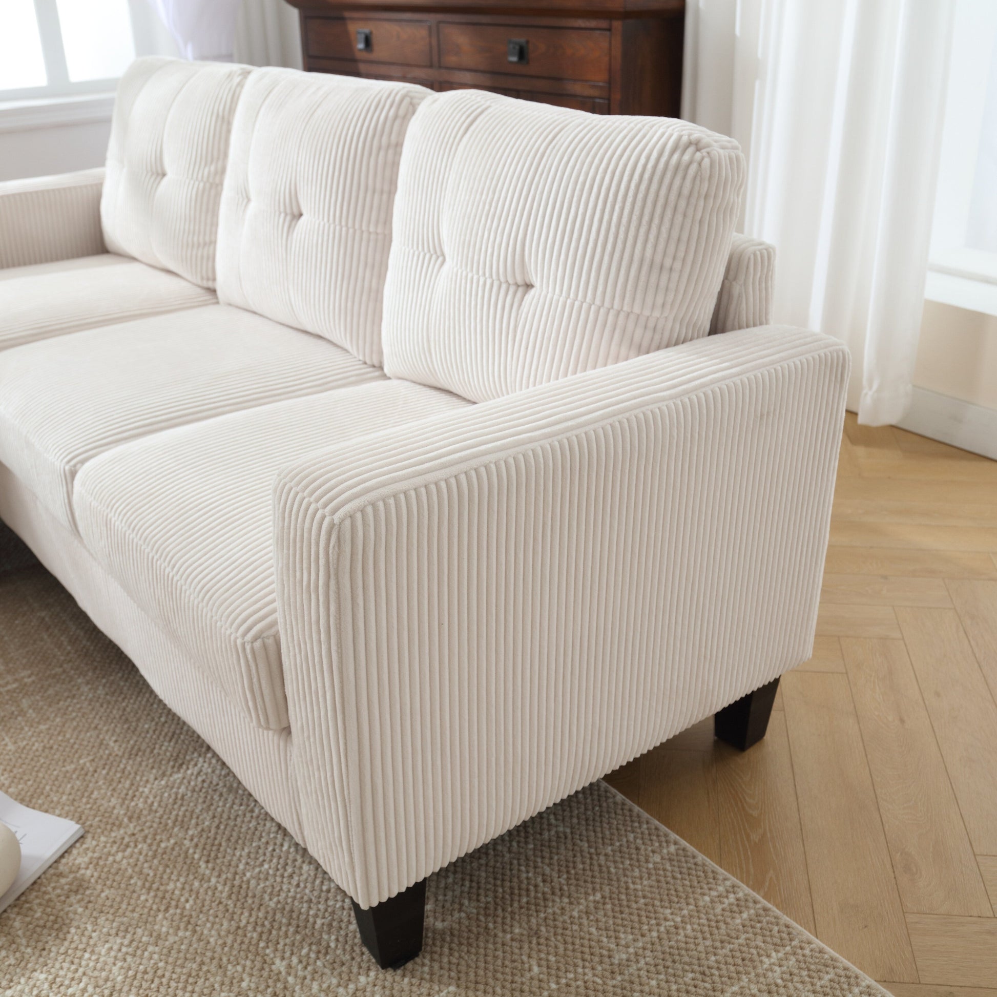 Beige 73.62'' Velvet L-Shaped Sofa Couch, 3-Seater with Reversible Chaise, Pet-Friendly and Easy Assembly for Small Spaces