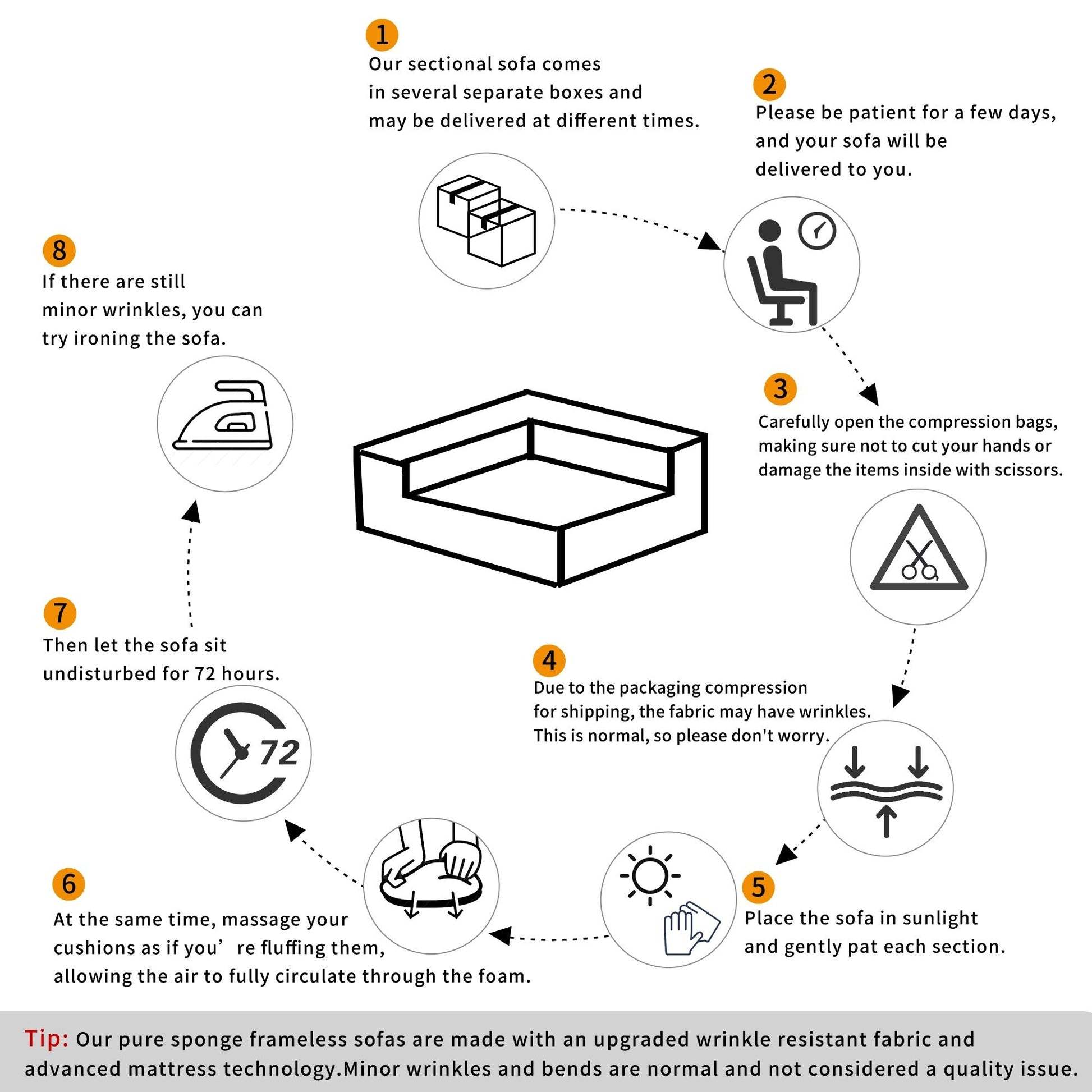 TIP: Due to package compression for better shipment, the fabric may have wrinkles. Please take all packages out and pat every part to make it rebound better and fluffy, so that it can restore to a picture-like status.