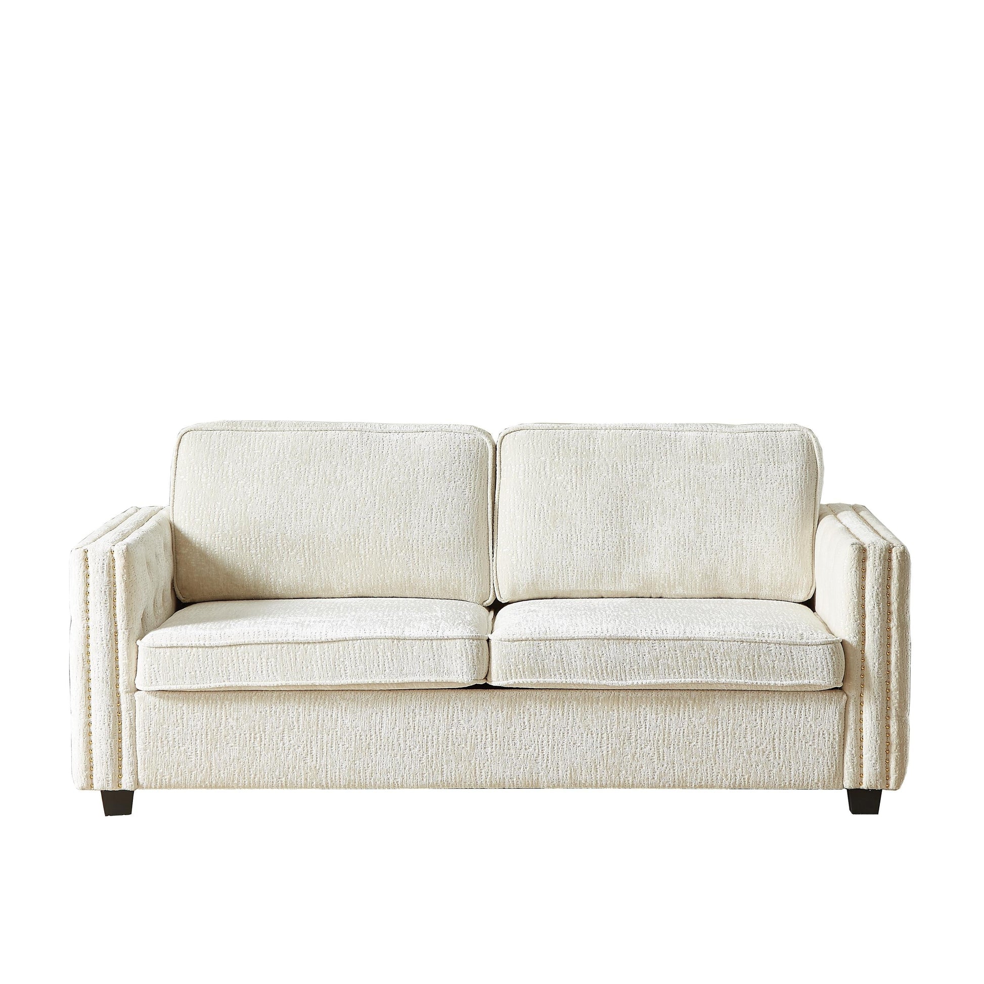 Beige 81 Chenille Nailheads 3-seater Sleeper Sofa with Memory Foam Mattress for Living Room