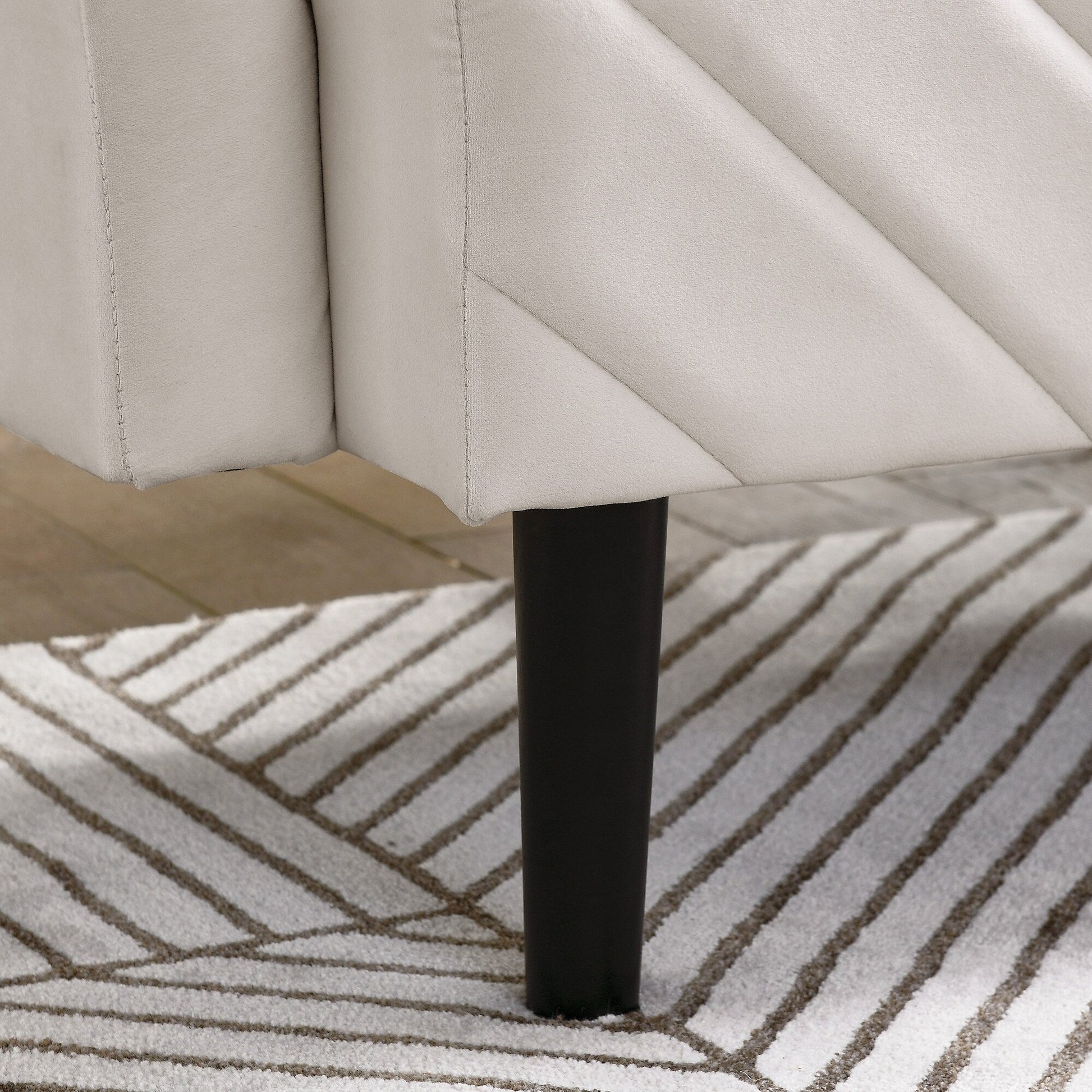 Combining modern lines with mid-century modern details, such as chevron tufting and tapered plastic legs, this piece features a timeless design that adds style to any decor.