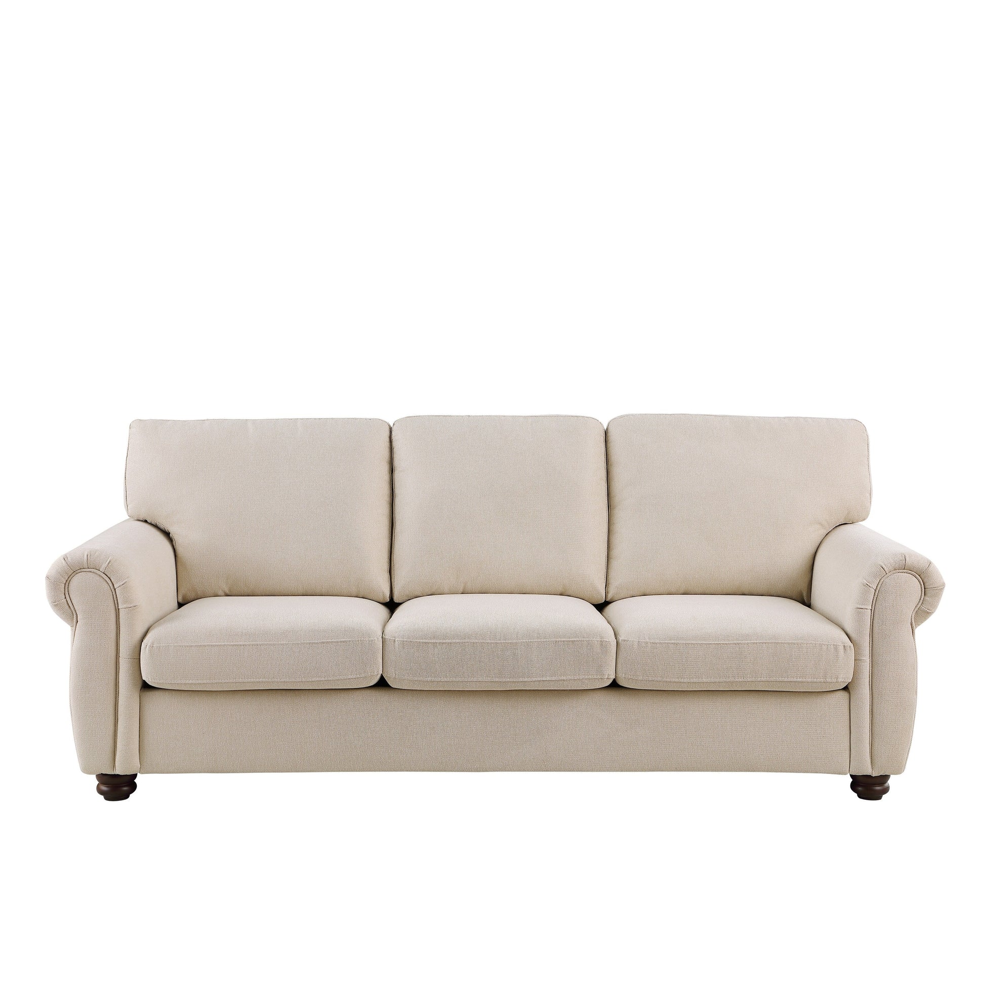 Beige Chenille 3-seater Sofa with Rolled Arms