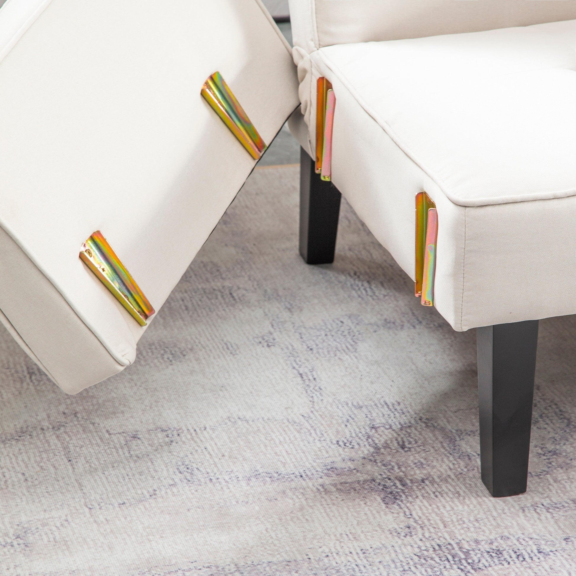 Beige Convertible 3-seater Futon Sofa Bed with Wood...