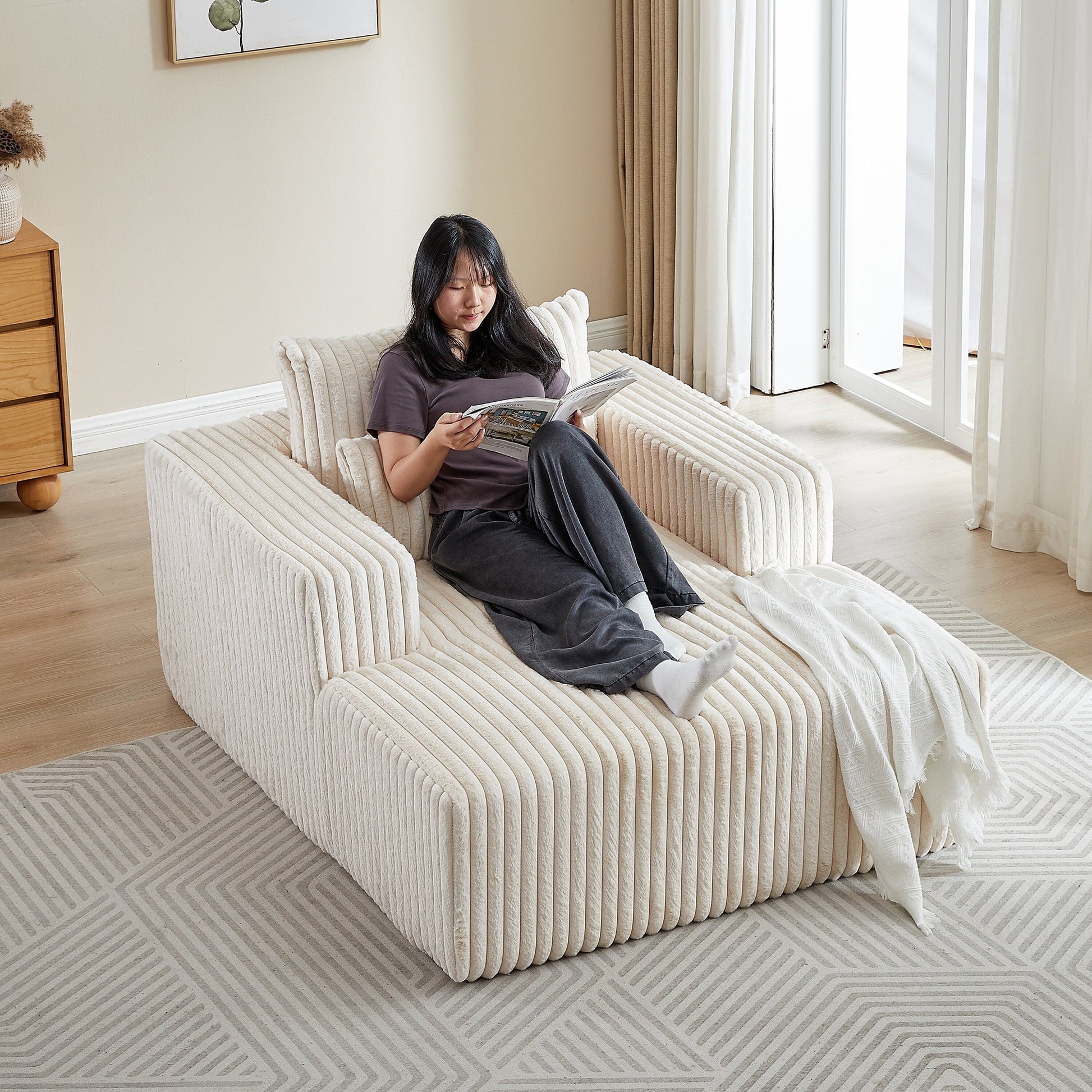 Beige Corduroy Sofa Lounge Chair with 2 Pillows