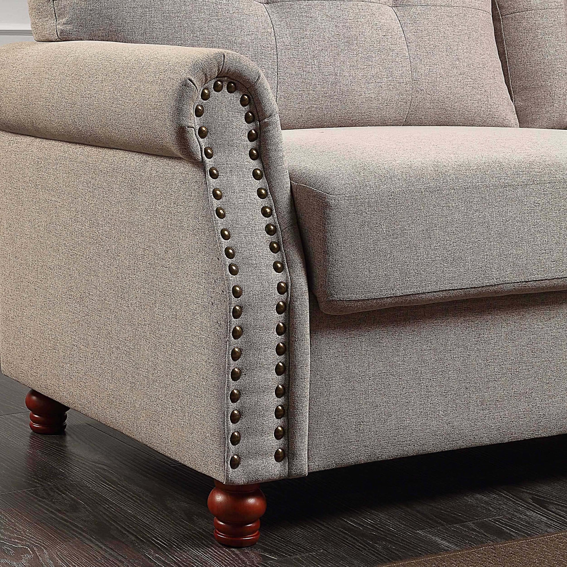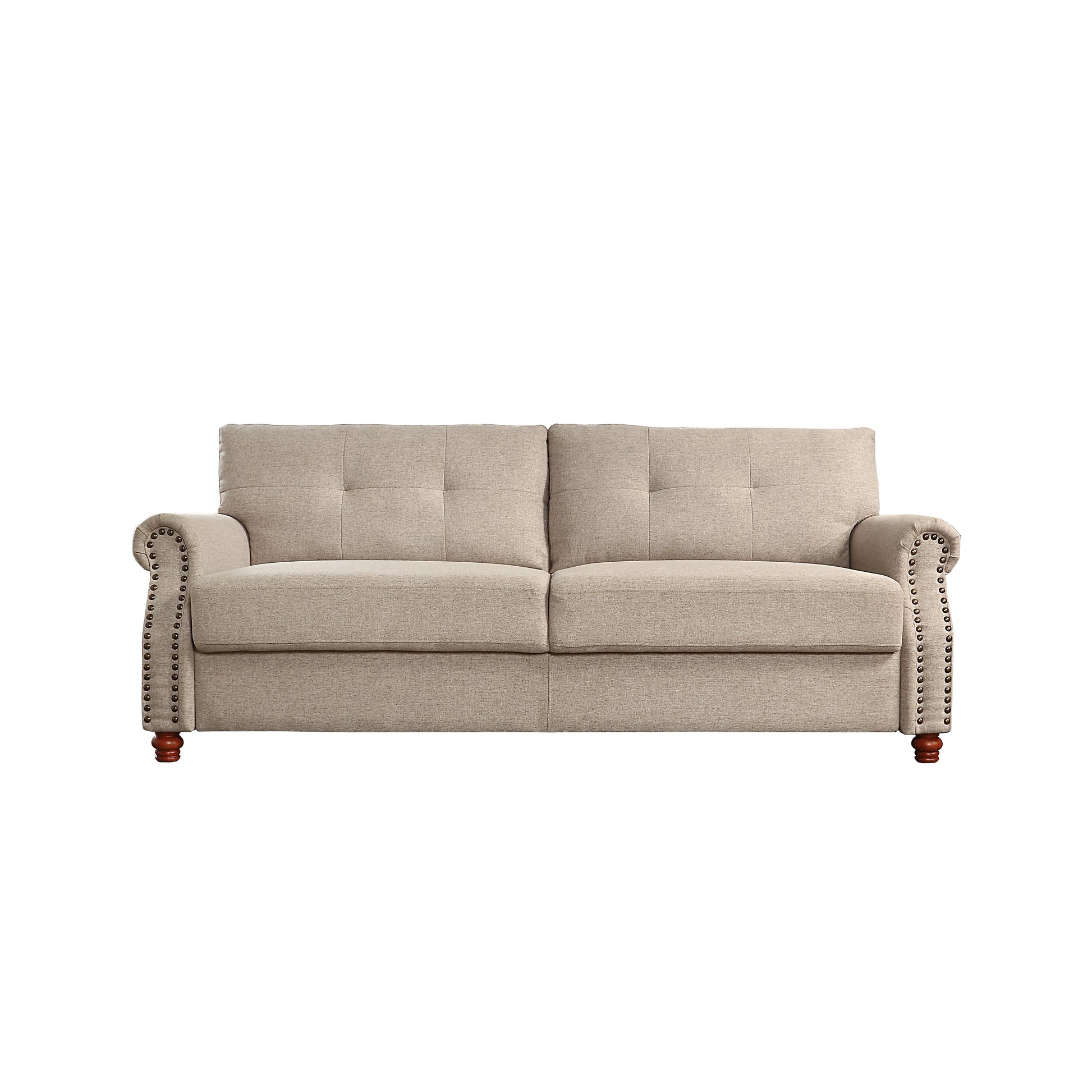 Beige Linen Fabric Upholstery Sofa with Storage -...
