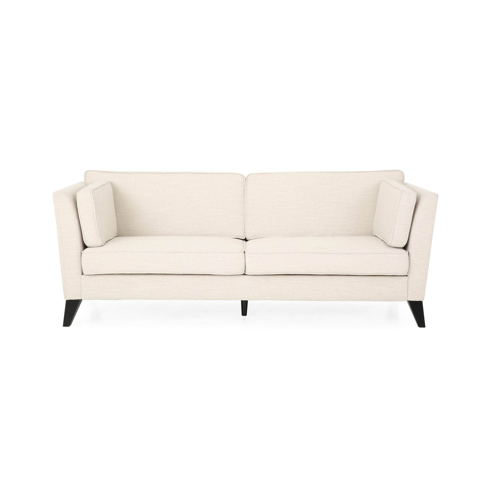 Beige Modern 82.5 3-seater Sofa with Birch Wood Legs and Side Pillows for Living Room