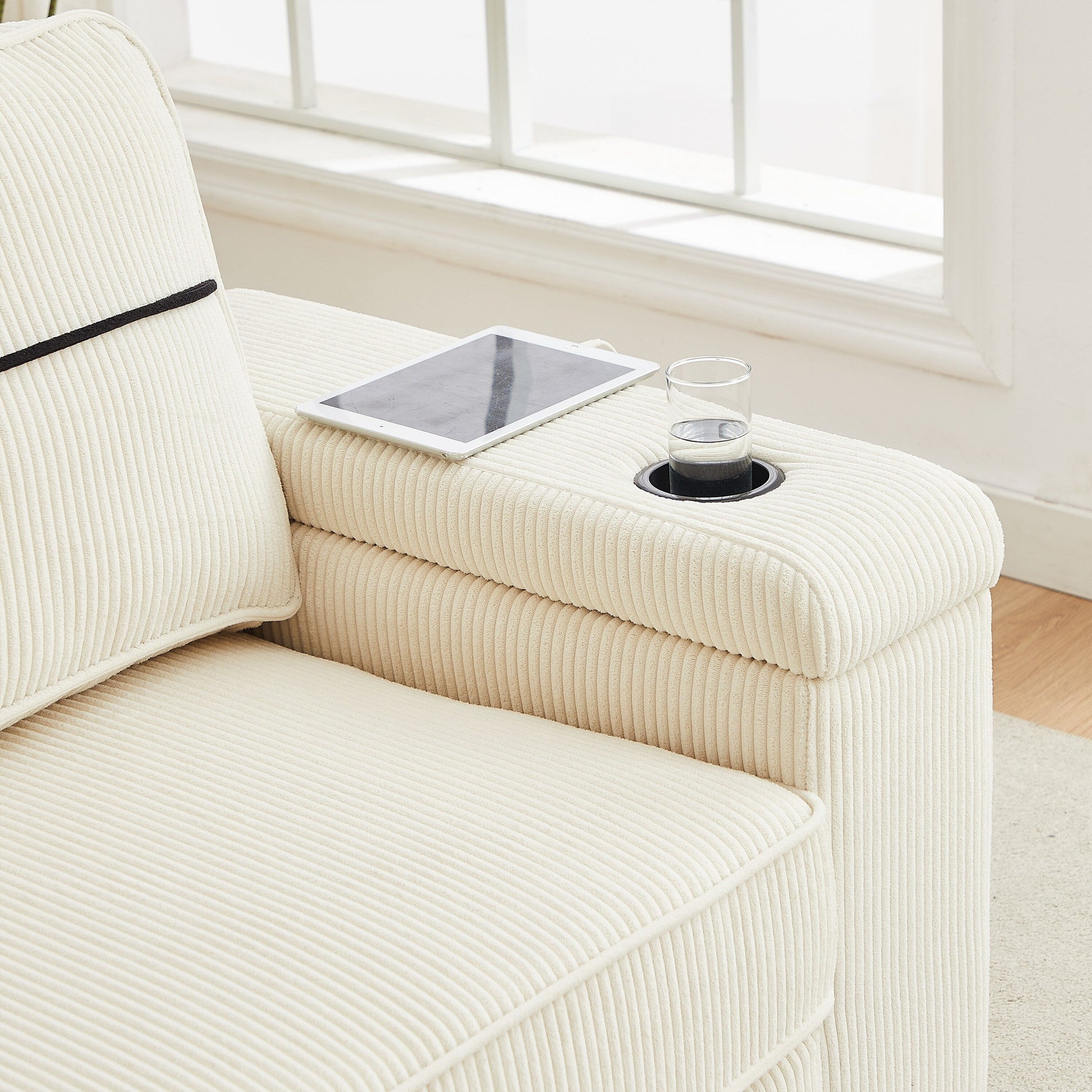Intimate Detail Design: This 3-seat sofa includes two storage spaces, two USB ports, and two cup holders. Effortlessly charge your devices and enjoy sipping drinks while lounging on the sofa, without any concerns about spills or stains. The armrest can also store snacks and books.