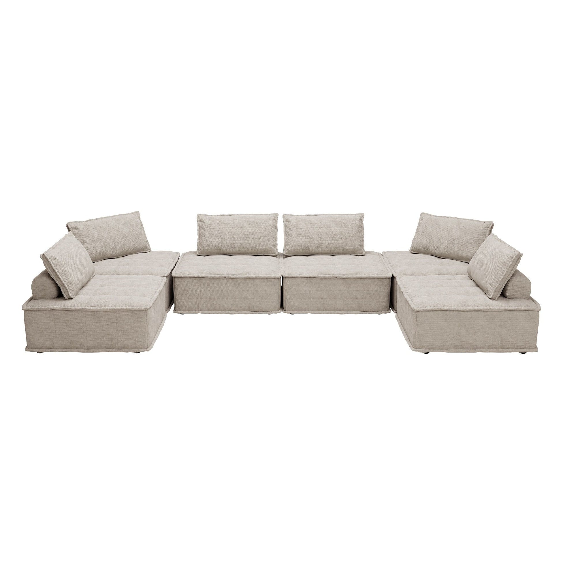 Beige Oversized 6-piece Chenille Modular Square Sofa Set...
