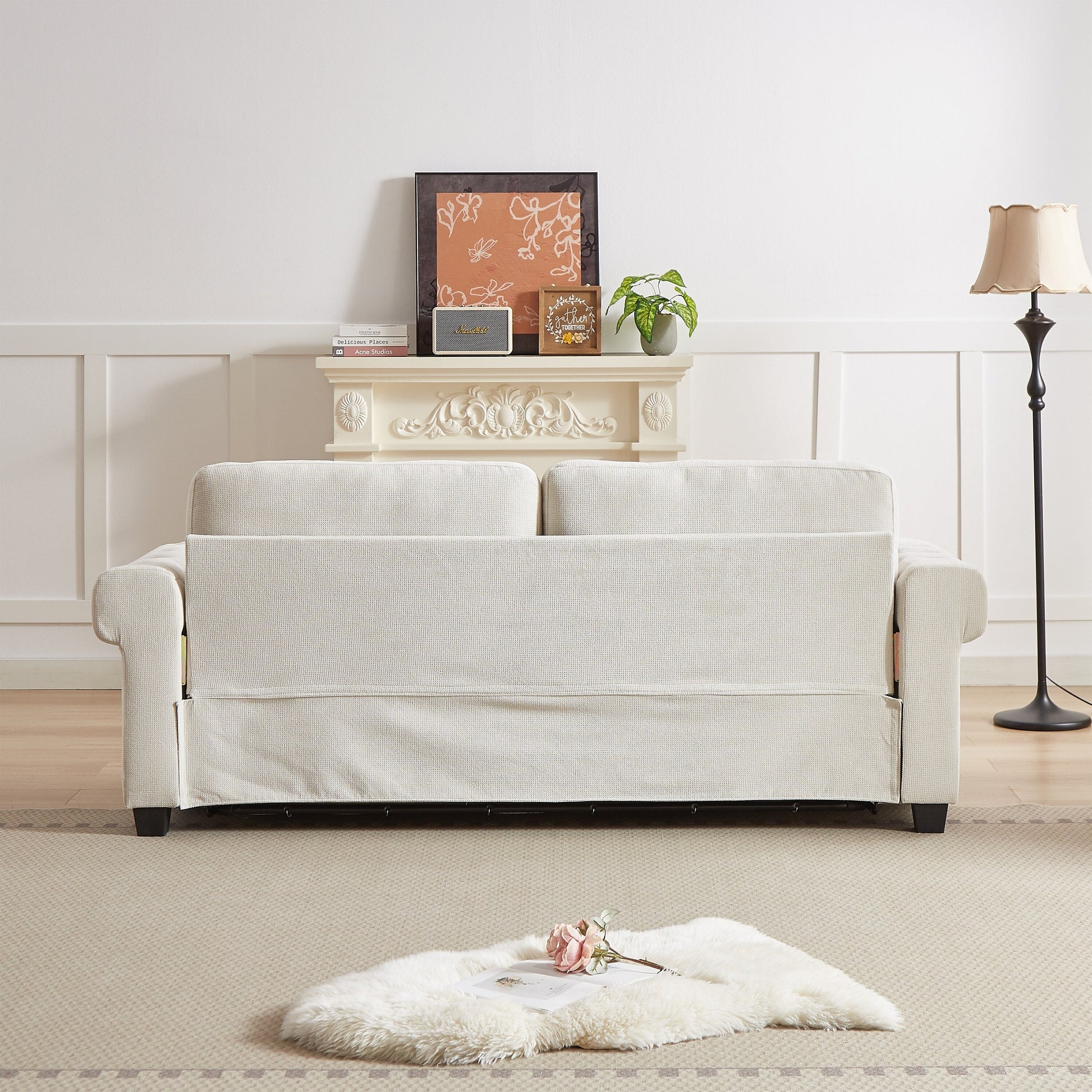Beige Polyester 3-seater Convertible Pullout Sofa Bed