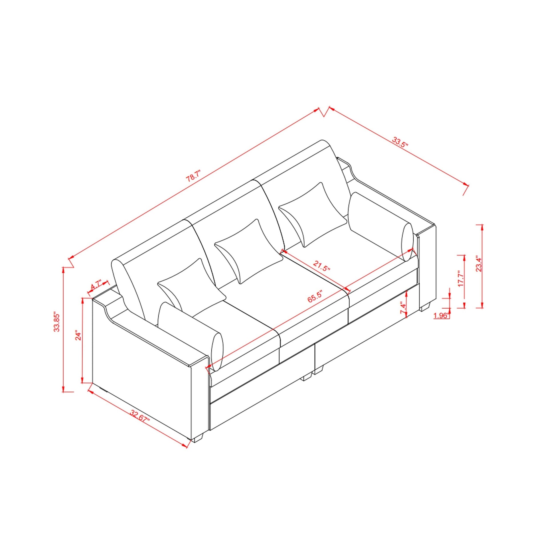 • High Quality Materials: The sofa is made of high-performance fabric with 100% polyester composition. The movable back cushions are filled with soft polyester, and the cushion is supported by spring pockets inside, which increases the elasticity and comfort of the sofa. The sofa legs are made of solid wood.