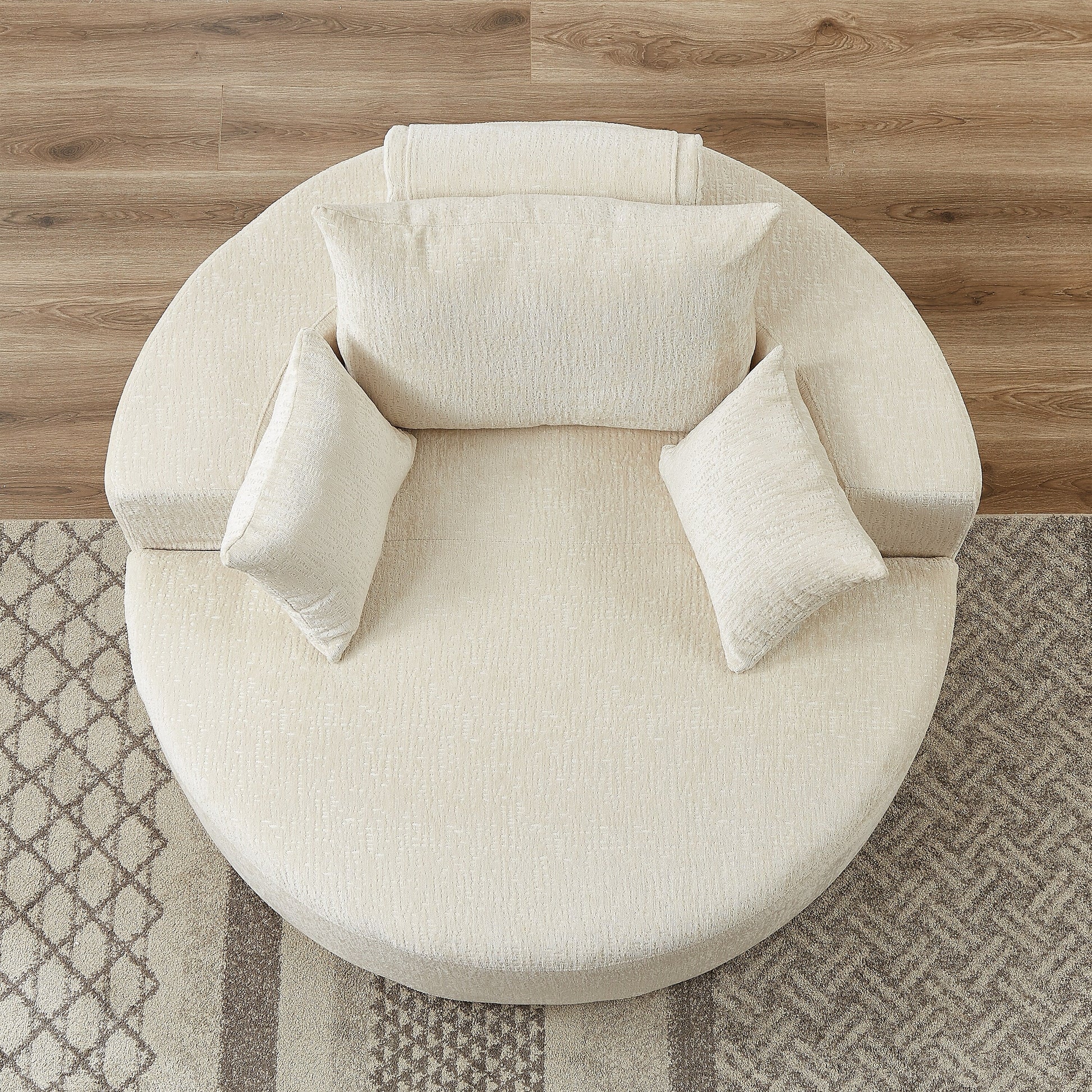 Beige Round Chenille Single Sleeper Sofa with Backrest...