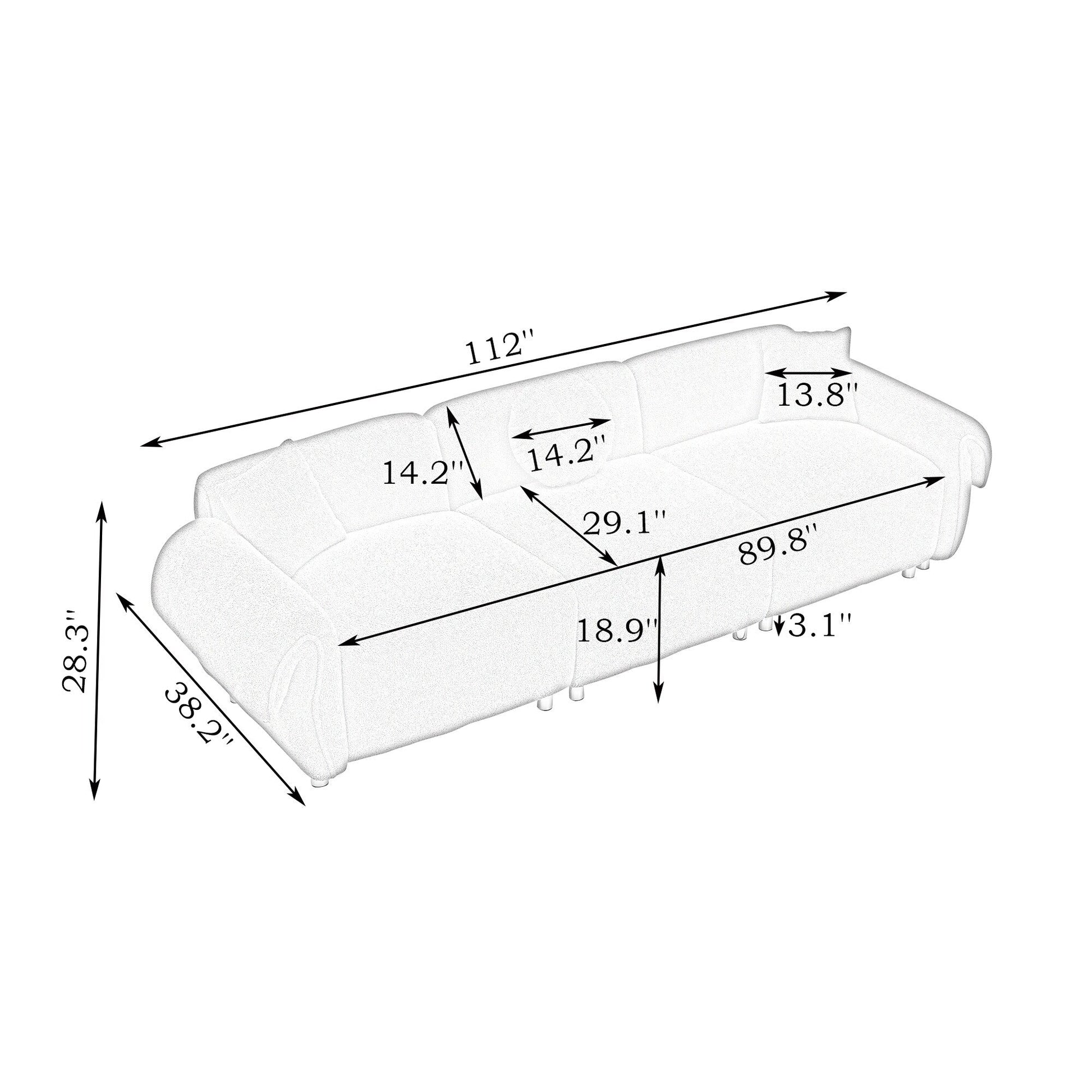 Beige Teddy Velvet 3-seater Sofa with Pillows