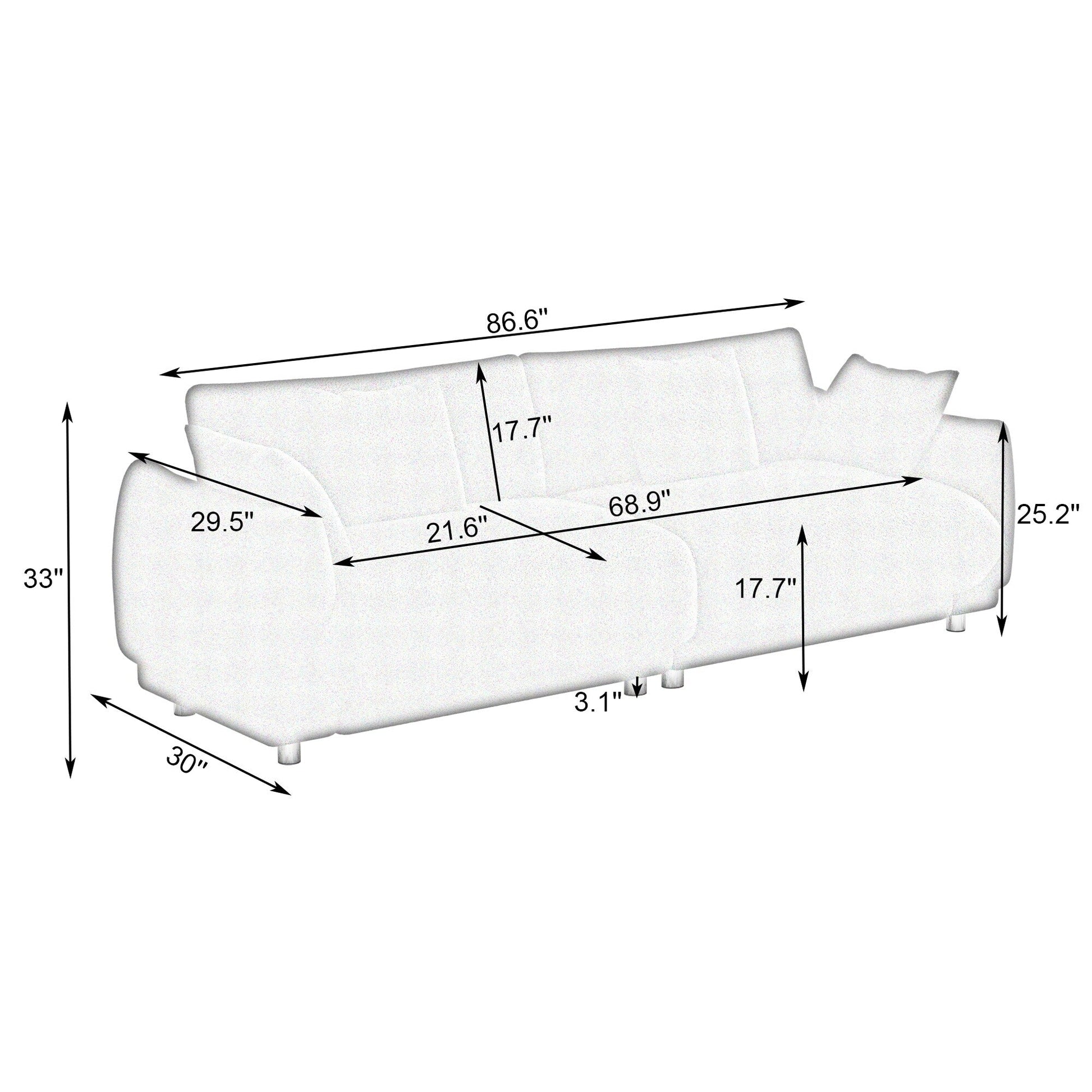 Sofa Size: 86.6' W x 30' D x 33' H
